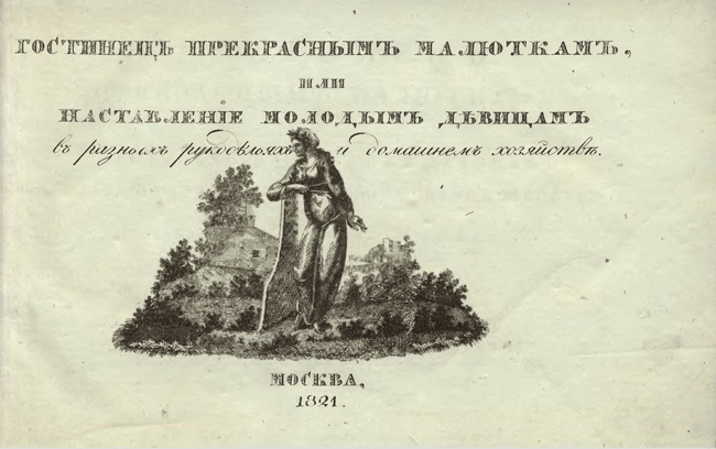 Гостинецъ прекраснымъ малюткамъ, или Наставленiе молодымъ дѣвицамъ в разныхъ рукодѣлияхъ и домашнемъ хозяйствѣ