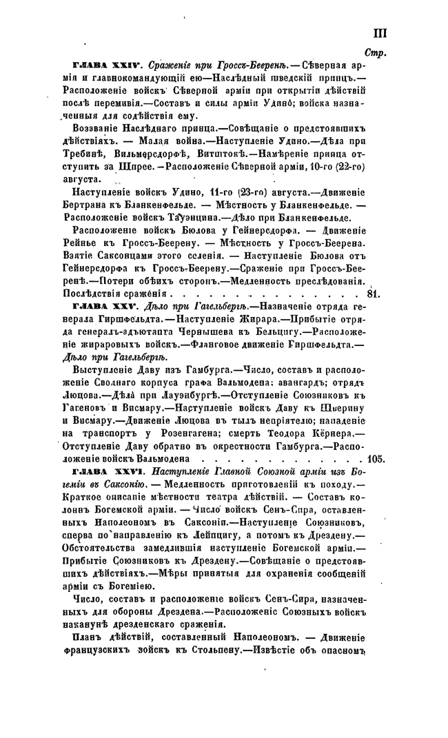 Из сделанного автором описания события 1813 года можно ознакомиться со всеми трудностями, которые надлежало преодолеть императору Александру I для ведения войны за пределами России; описаны кровавые сражения первой кампании и перемирие, начертанное на основе новых документов.