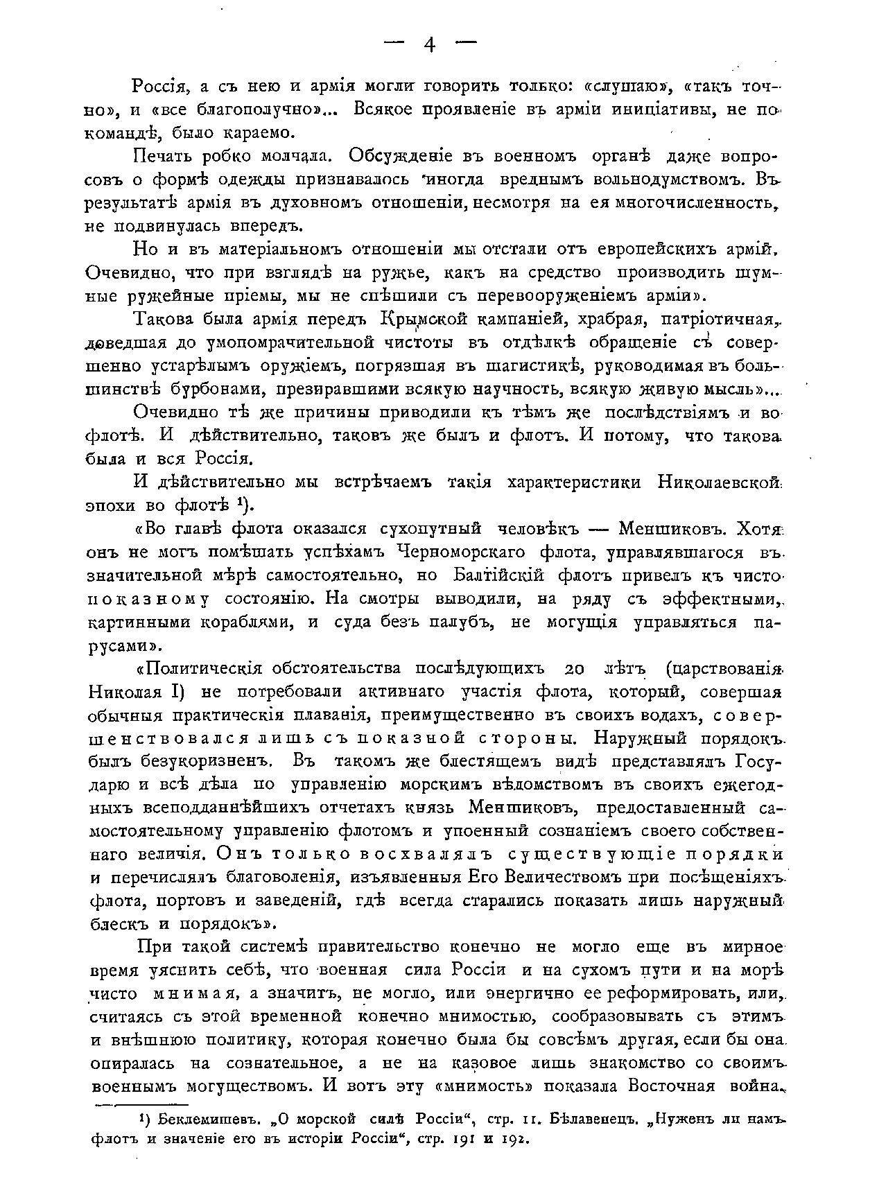 «История» рисует картину постепенного развития русского военного дела. С особым вниманием издание останавливается на наиболее выдающихся боевых эпизодах, интересуясь в тоже время организацией, бытом, вооружением и боевой подготовкой наших войск, в связи с политической жизнью государства. «История русской армии и флота» по своим размерам ( до 170 печатных листов) значительно превосходит прежние издания этого рода. Снабженная большим количеством иллюстраций и фотографий, она предназначалась для просвещения и русского офицерства, и русского общества.