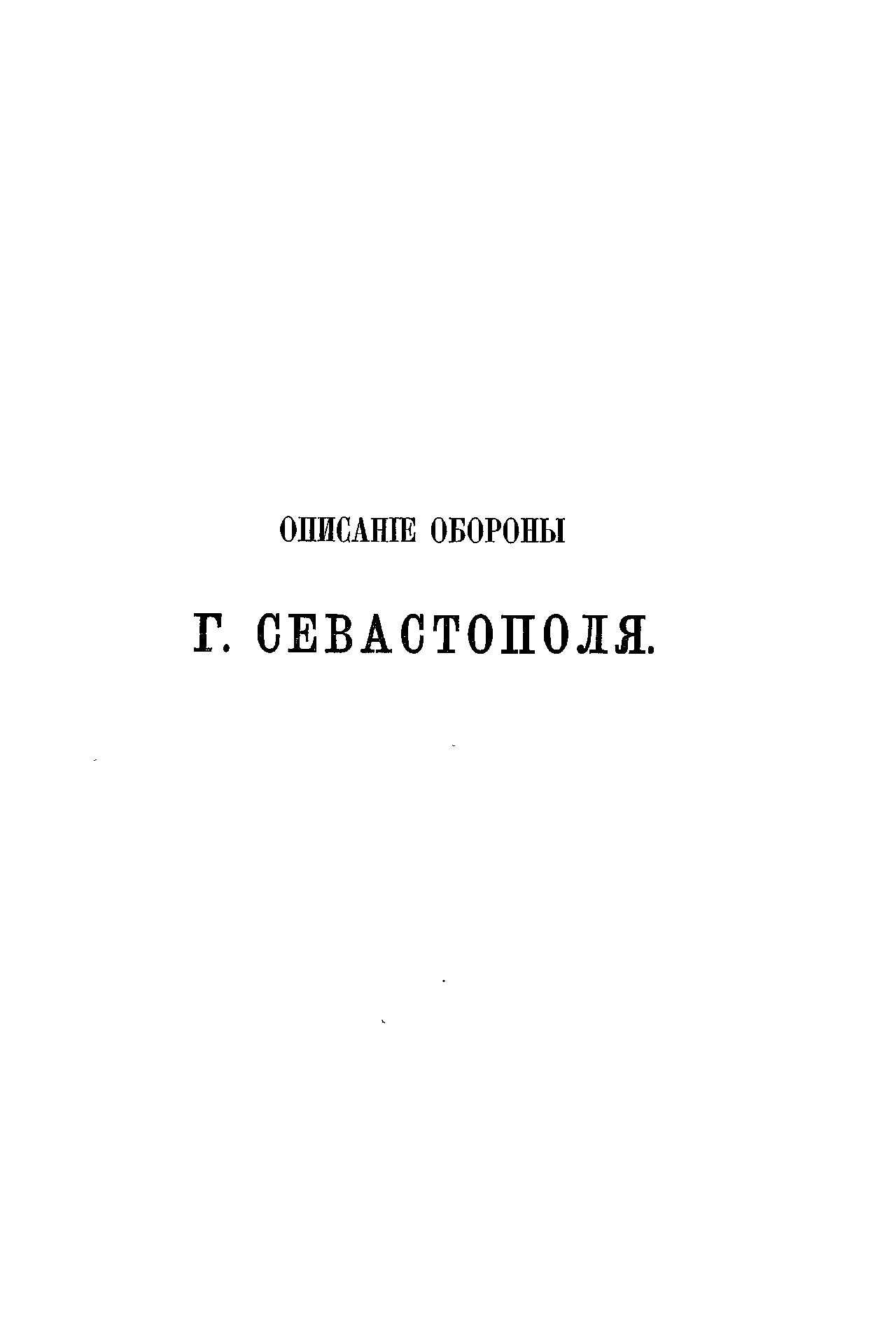 Полный обзор средств воюющих держав, полуострова Крыма, в особенности театра военных действий, изложенный по дням ход обороны и атаки, действия противников, а также распоряжения относительно убыли и усиления крымской армии, продовольствия войск и попечения больных и раненных, планы и чертежи.