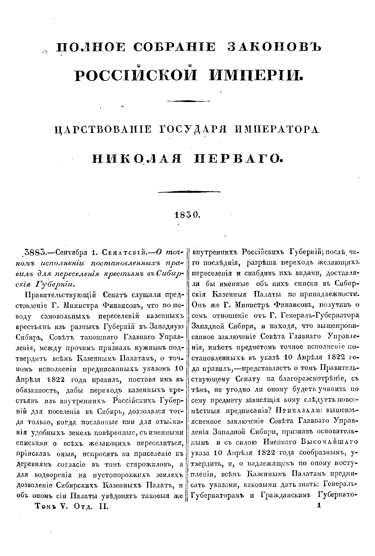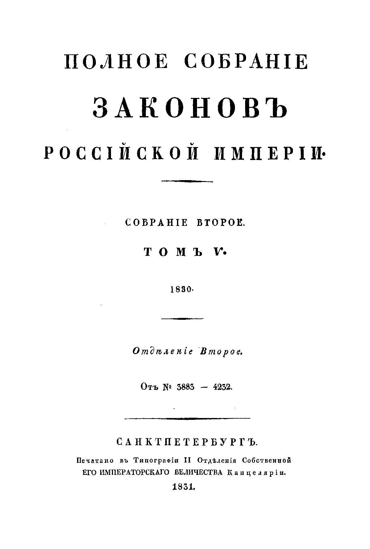 Полное собрание законов Российской Империи. Собрание Второе. Том V. Отделение 2