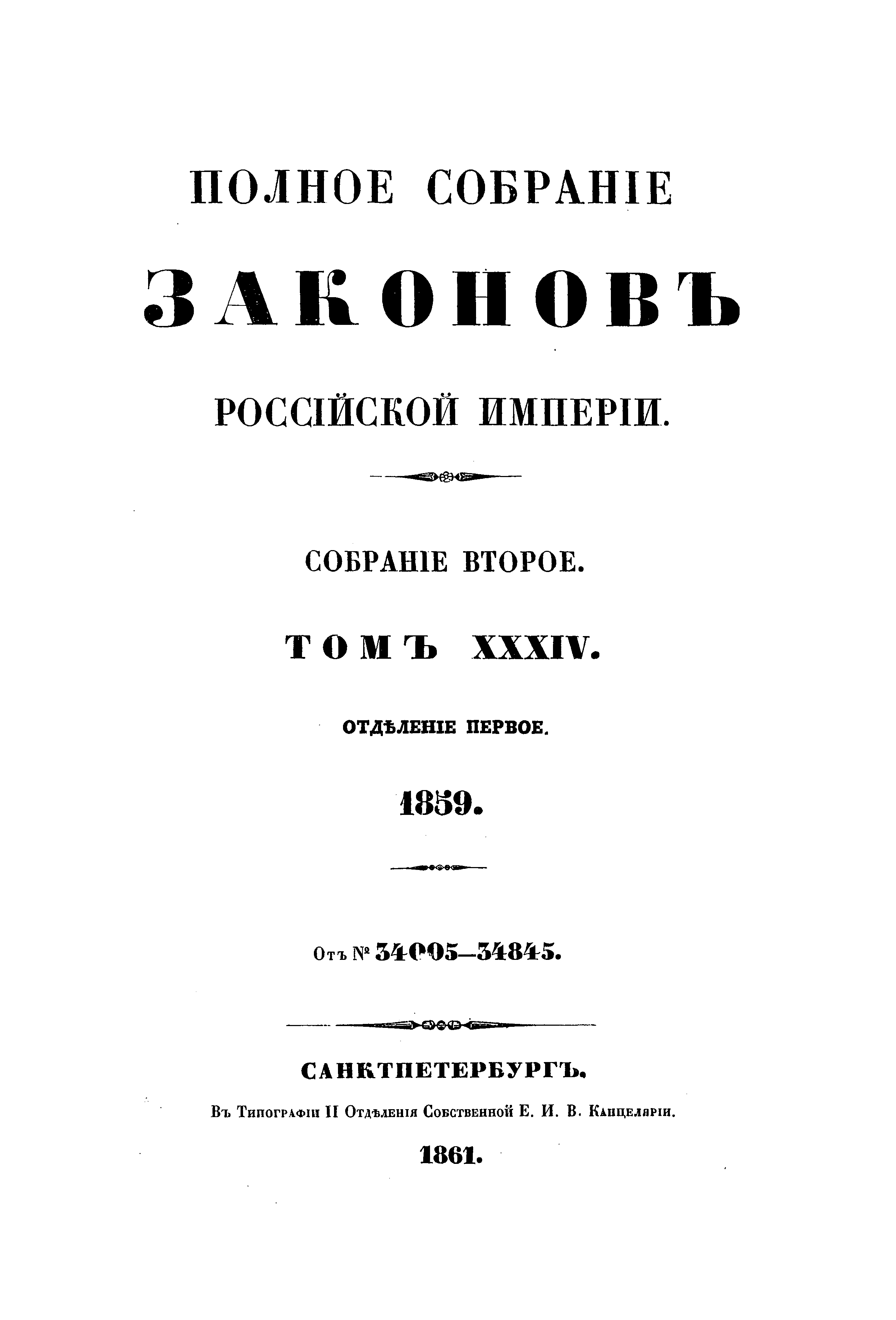 Полное собрание законов Российской Империи. Собрание Второе. Том XXXIV. Отделение 1