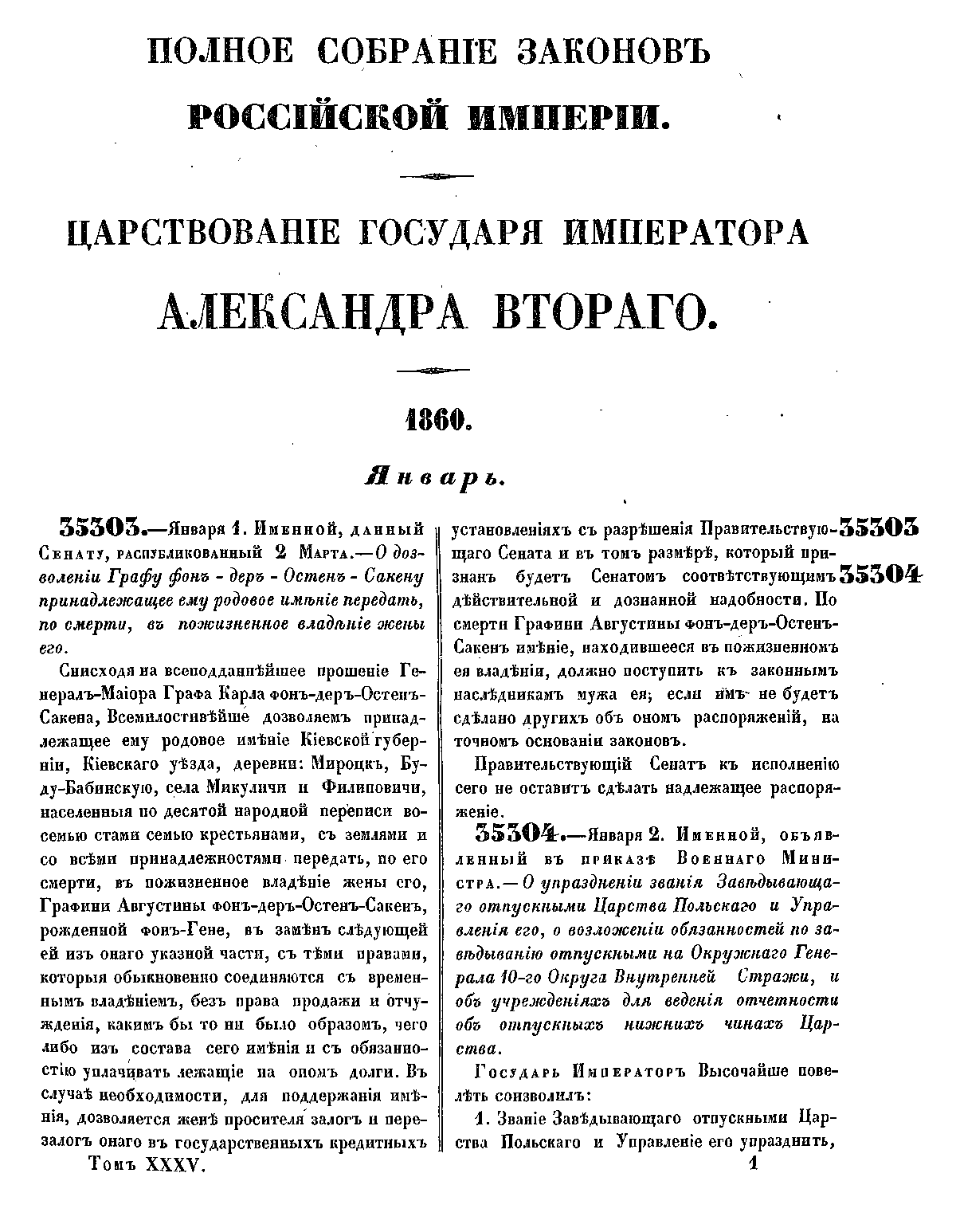 Полное собрание законов Российской Империи. Собрание Второе. Том XXXV. Отделение 1