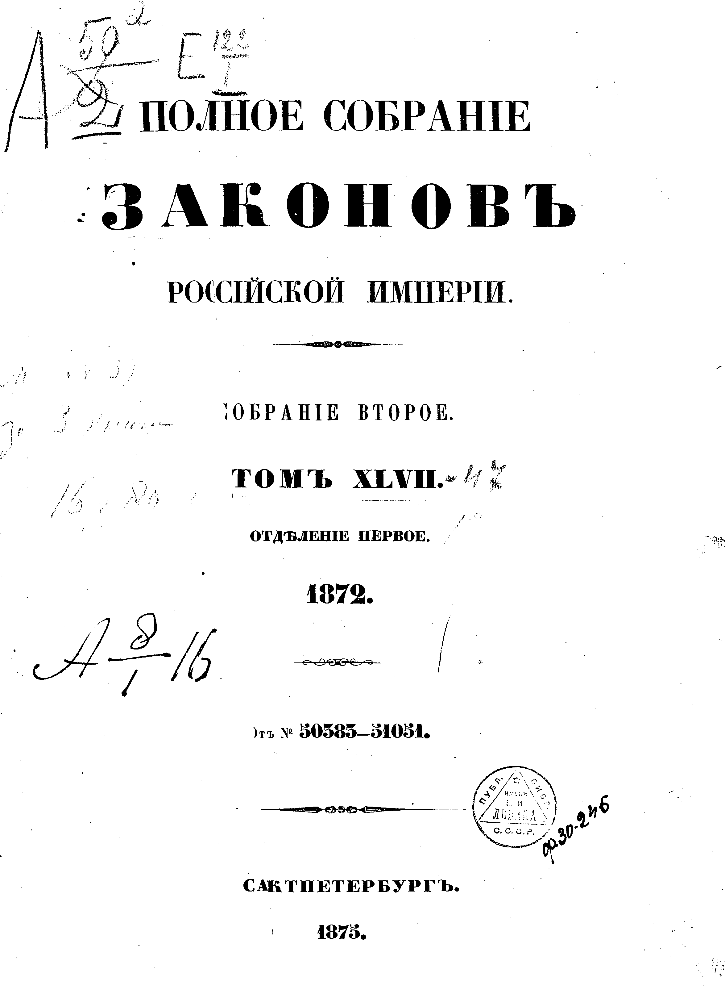 Полное собрание законов Российской Империи. Собрание Второе. Том XLVII. Отделение 1