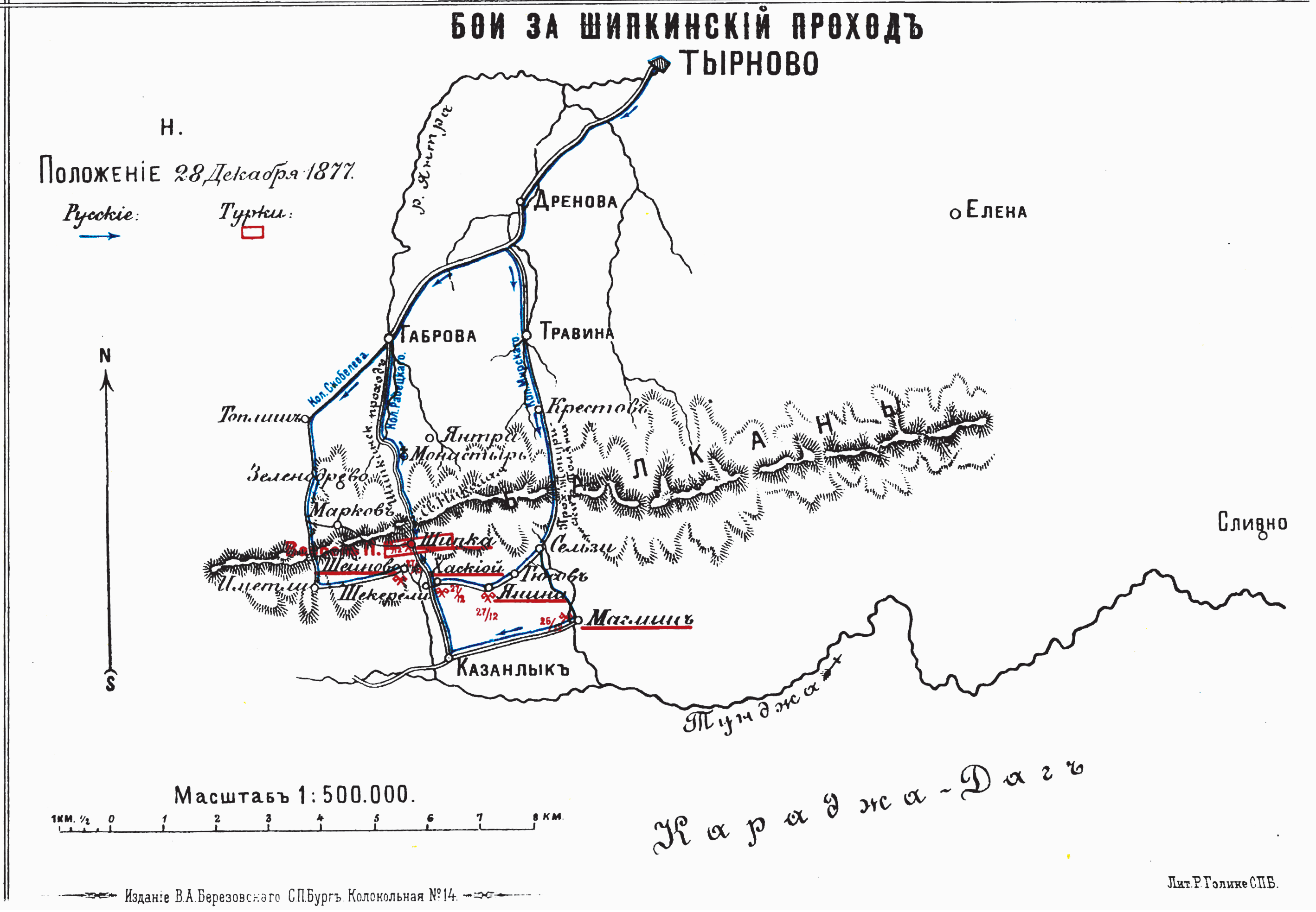 Бои за Шипкинский проход с 5 июля по 28 декабря 1877. H. Положение 28 декабря 1877