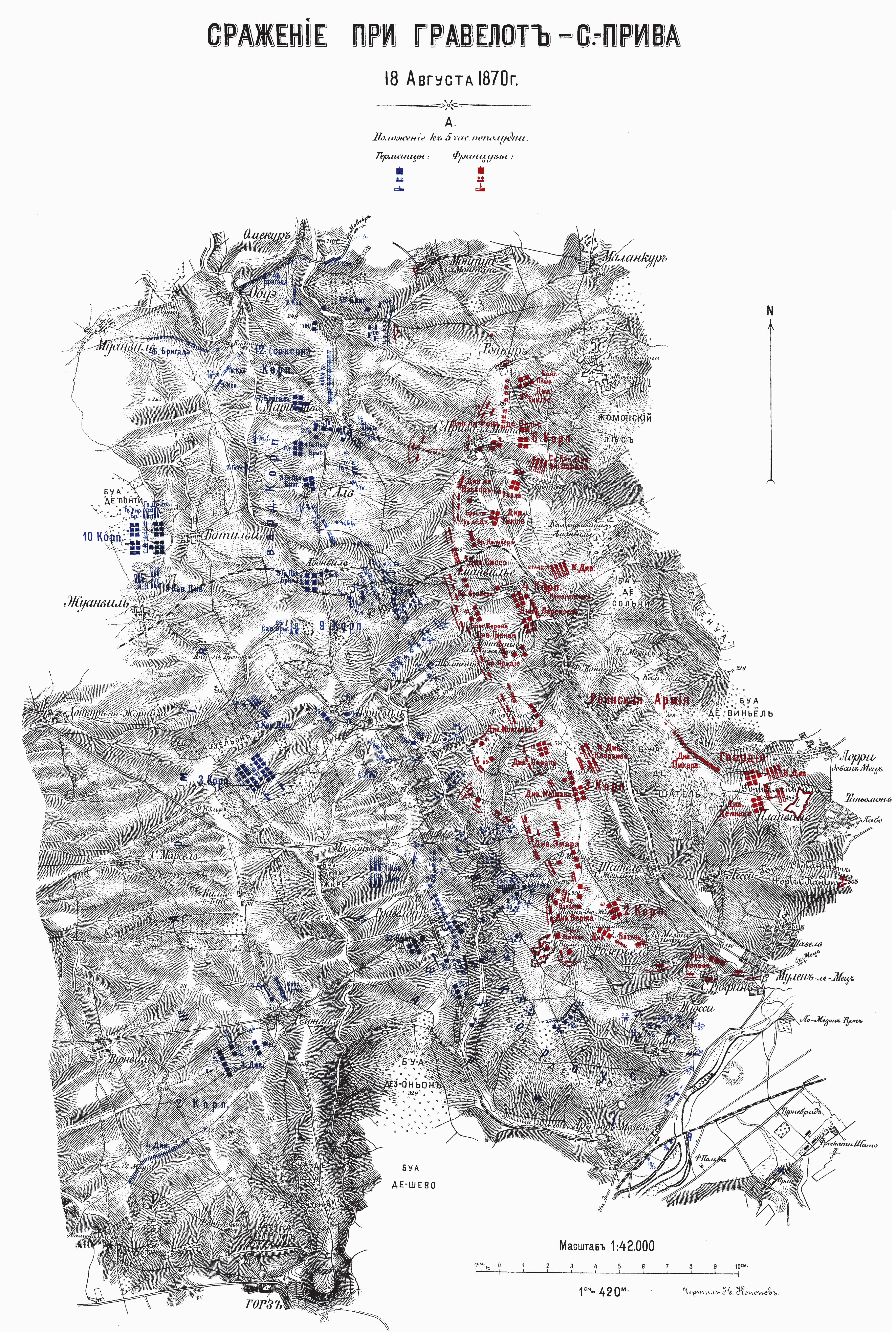 Сражение при Гравелот-С.-Прива 18 августа 1870 года. Положение к 5 часам пополудни