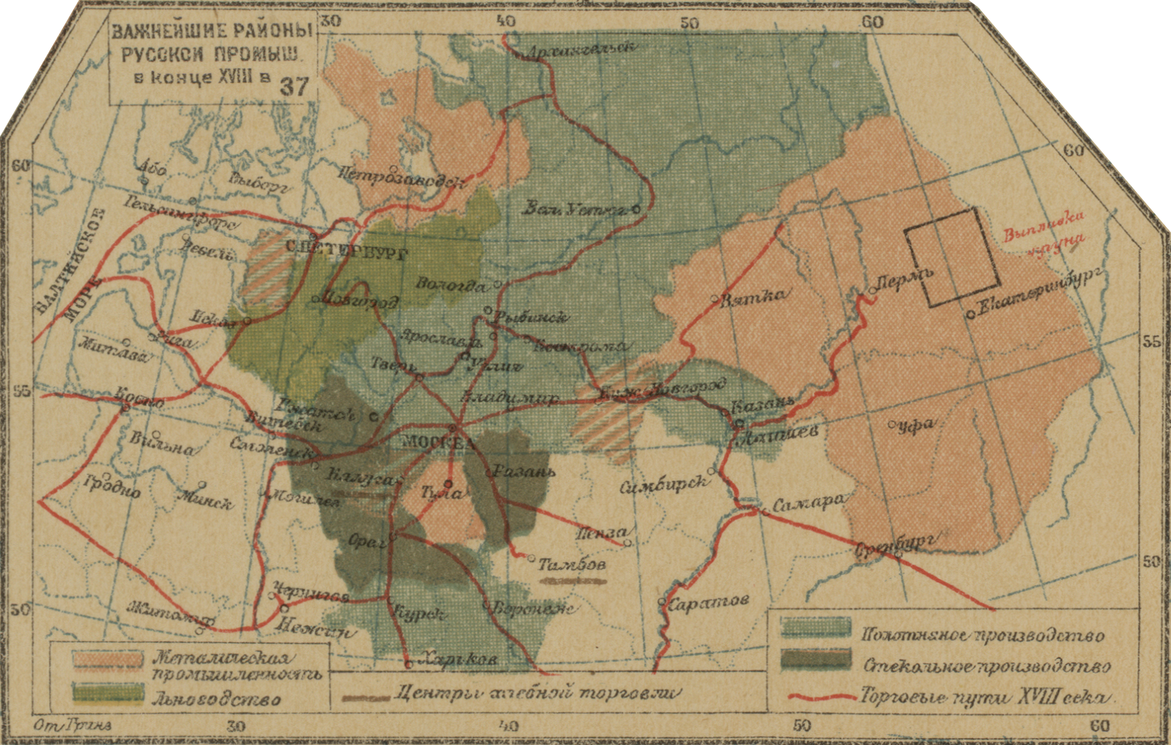 Важнейшие районы русской промышленности в конце XVIII века