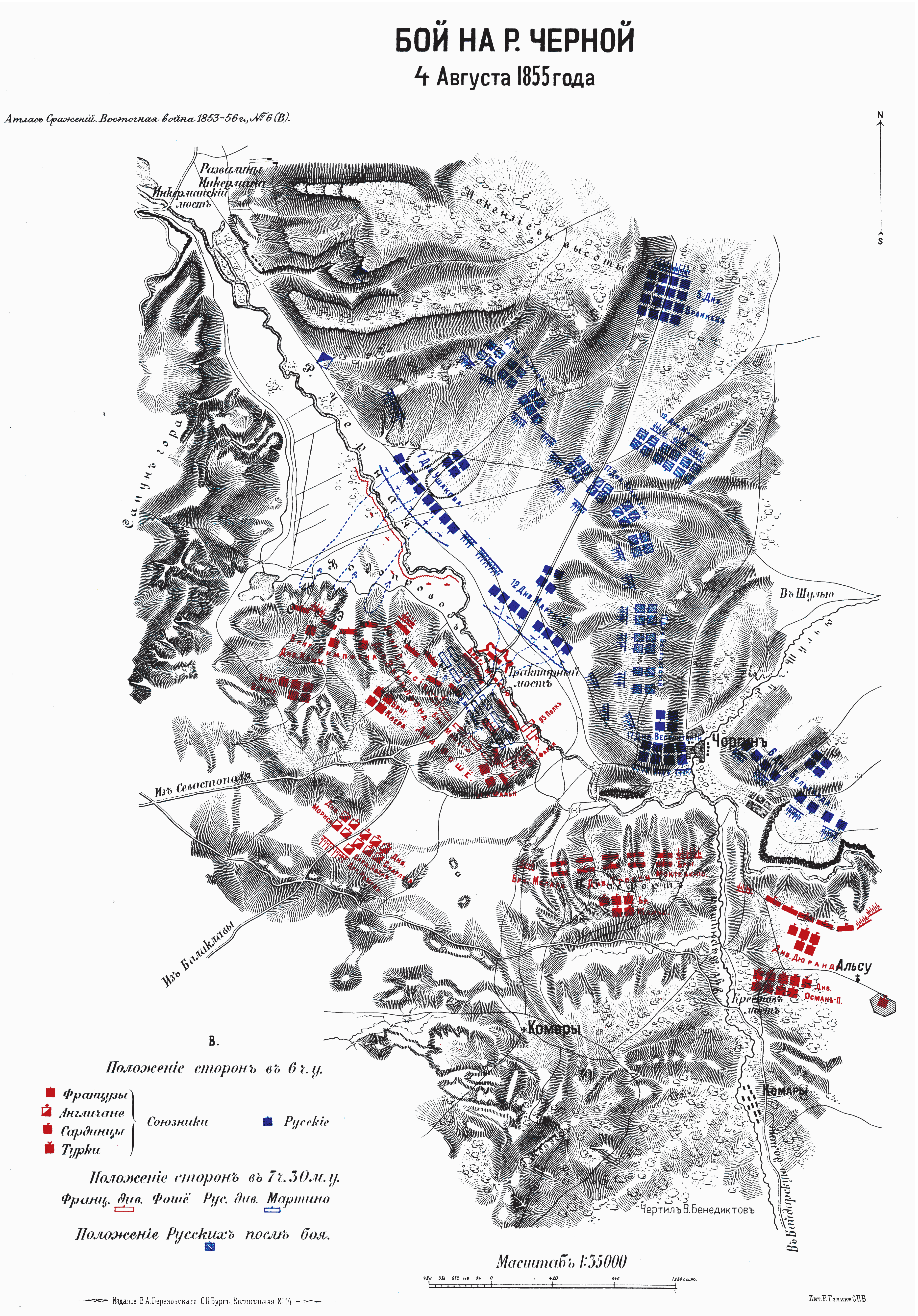 Бой на реке Черной 4 августа 1855 года. Положение вечером в 6 часов вечера