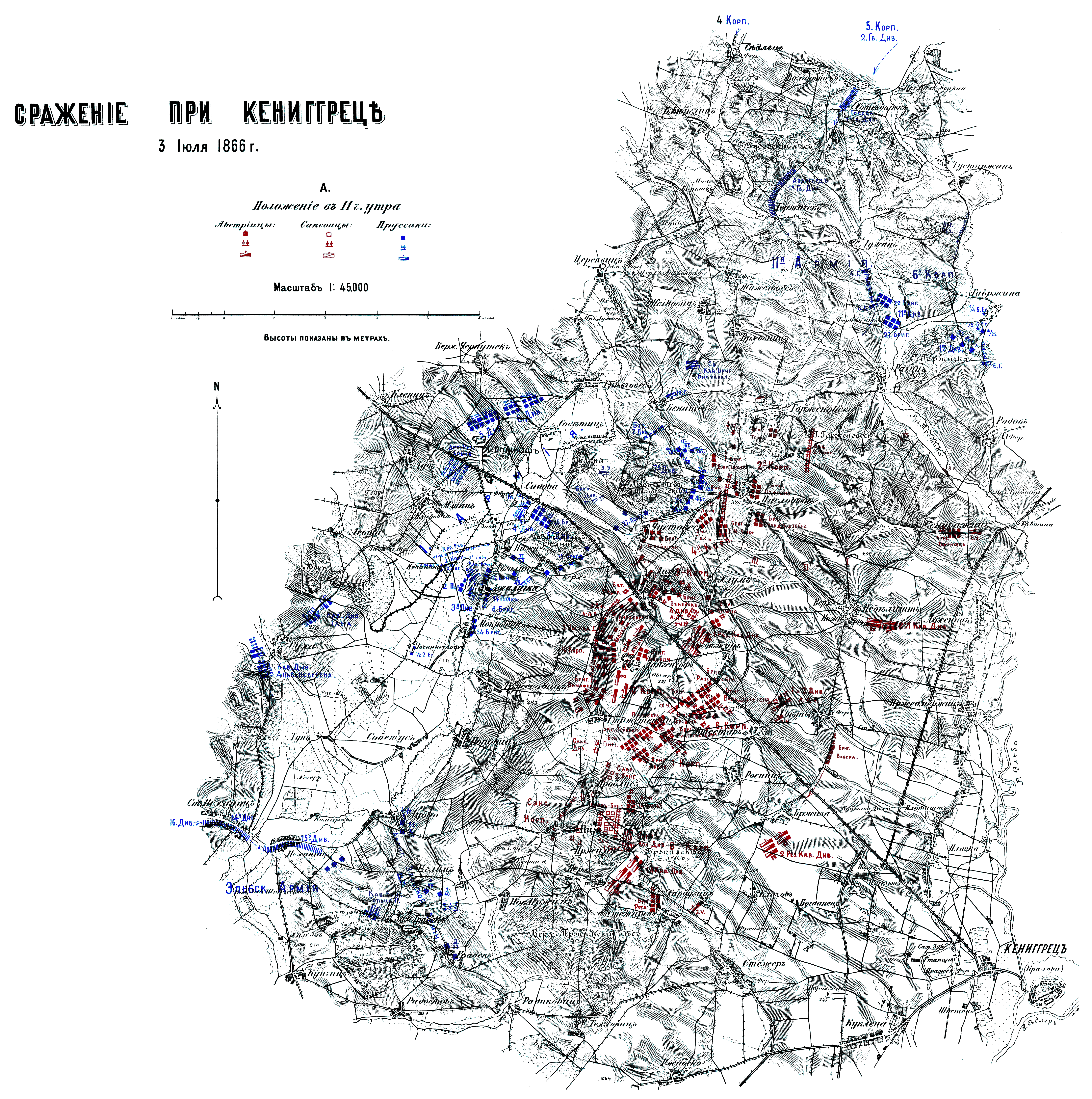 Сражение при Кениггреце 3 июля 1866 года. A. Положение в 11 часов утра