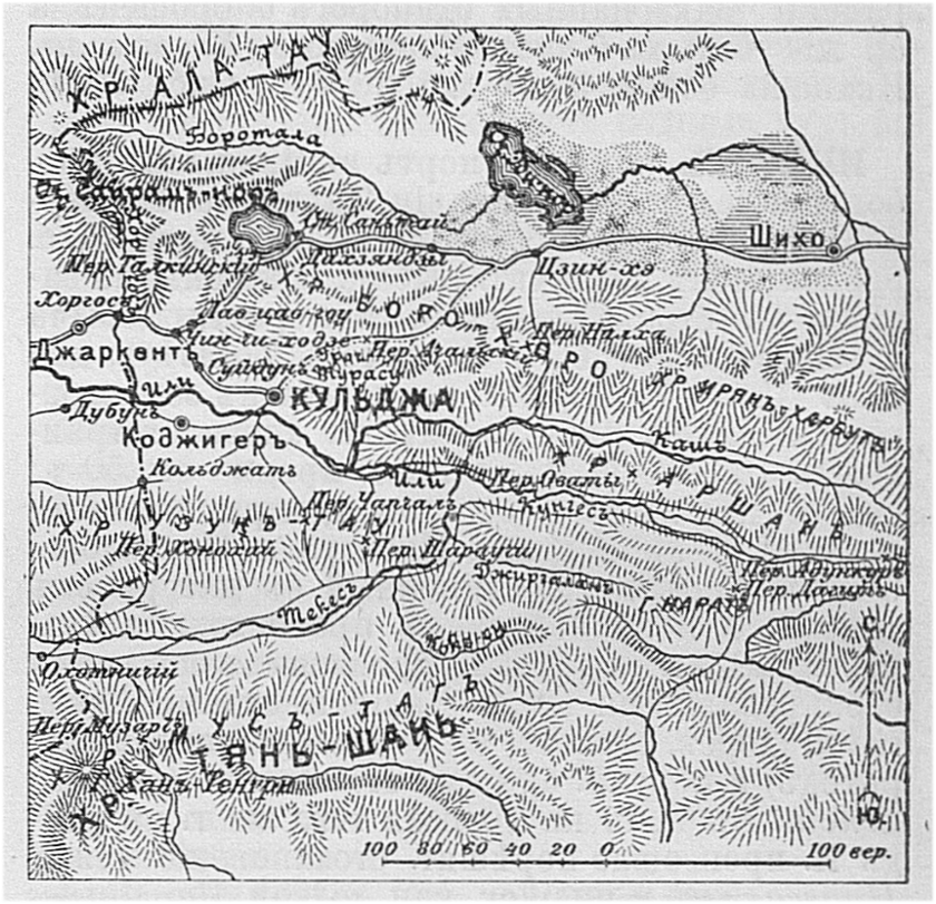 Фрагмент карты России Гесселя Герритса (основанная на чертёже Фёдора Годунова). Кавказ в XV—XVI вв. Сунженский острог (Zunsa).