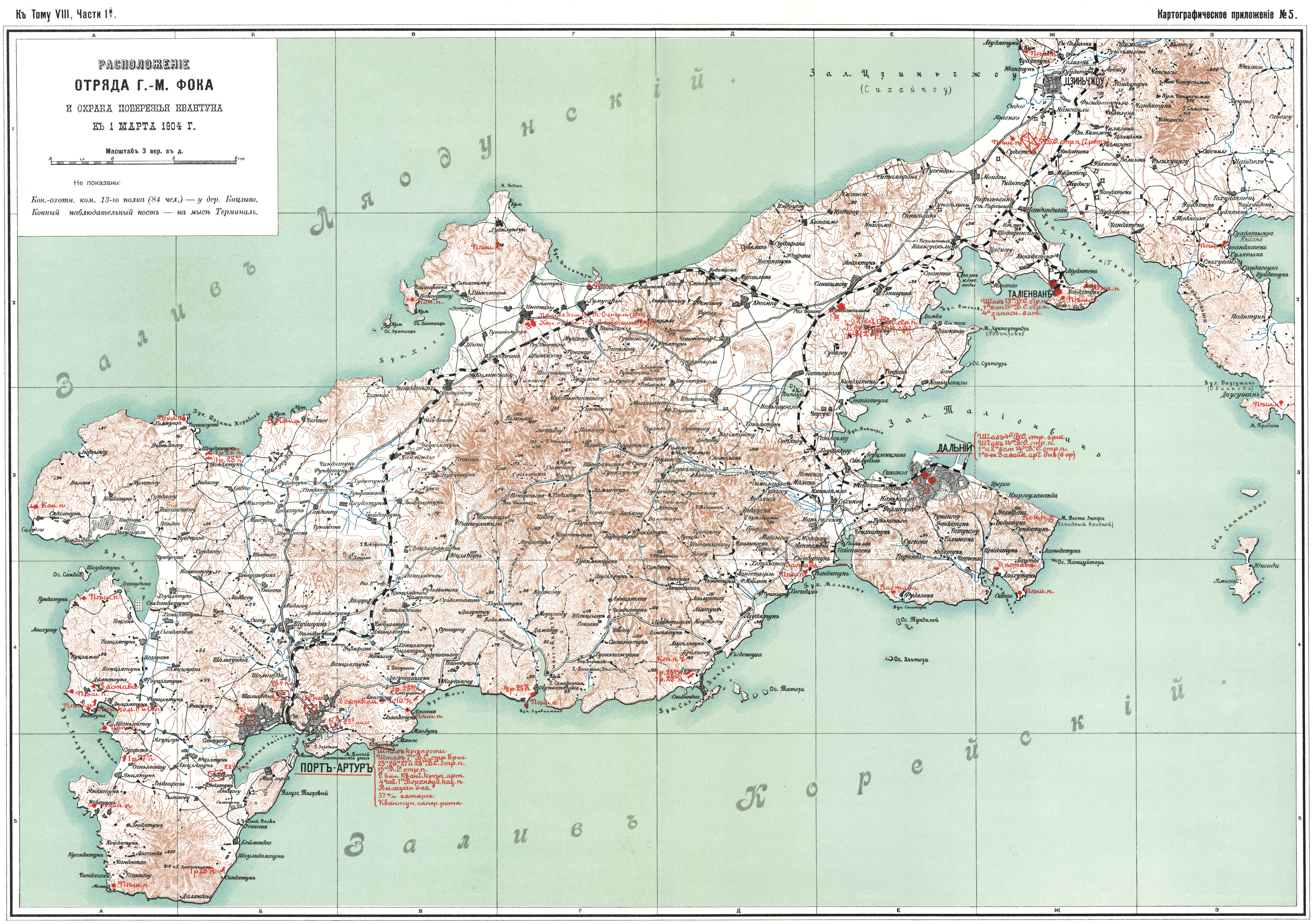 Расположение отряда генерал-майора Фока и охрана побережья Квантуна к 1 марта 1904 года