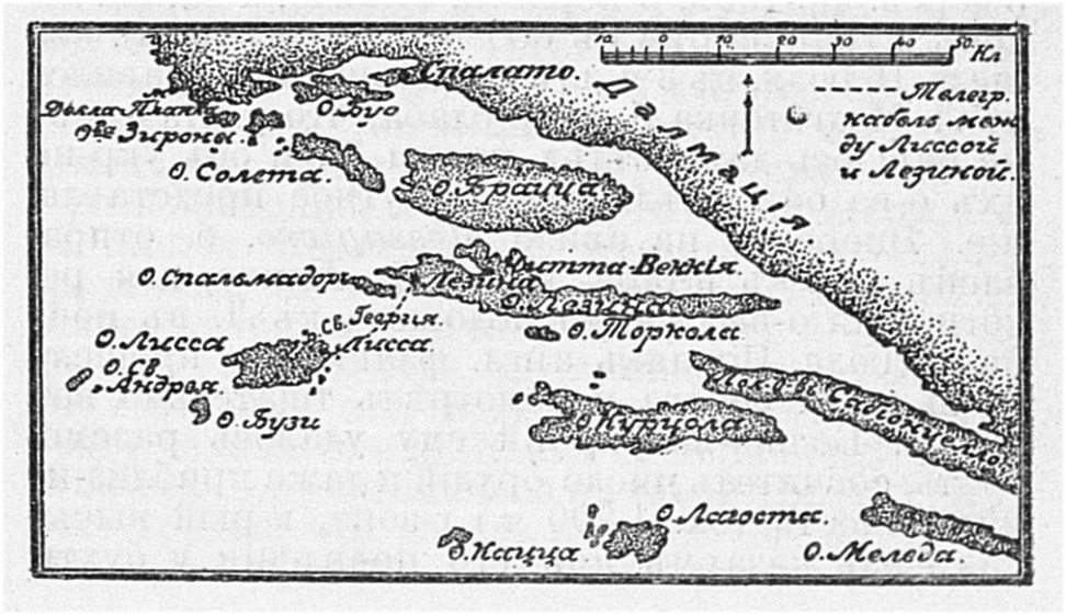 Телеграфный кабель между Лиссой и Лезиной в Адриатическом море.