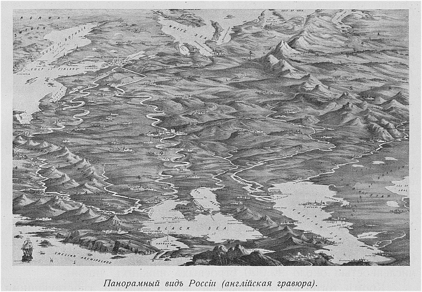 Панорамный вид России (английская гравюра)