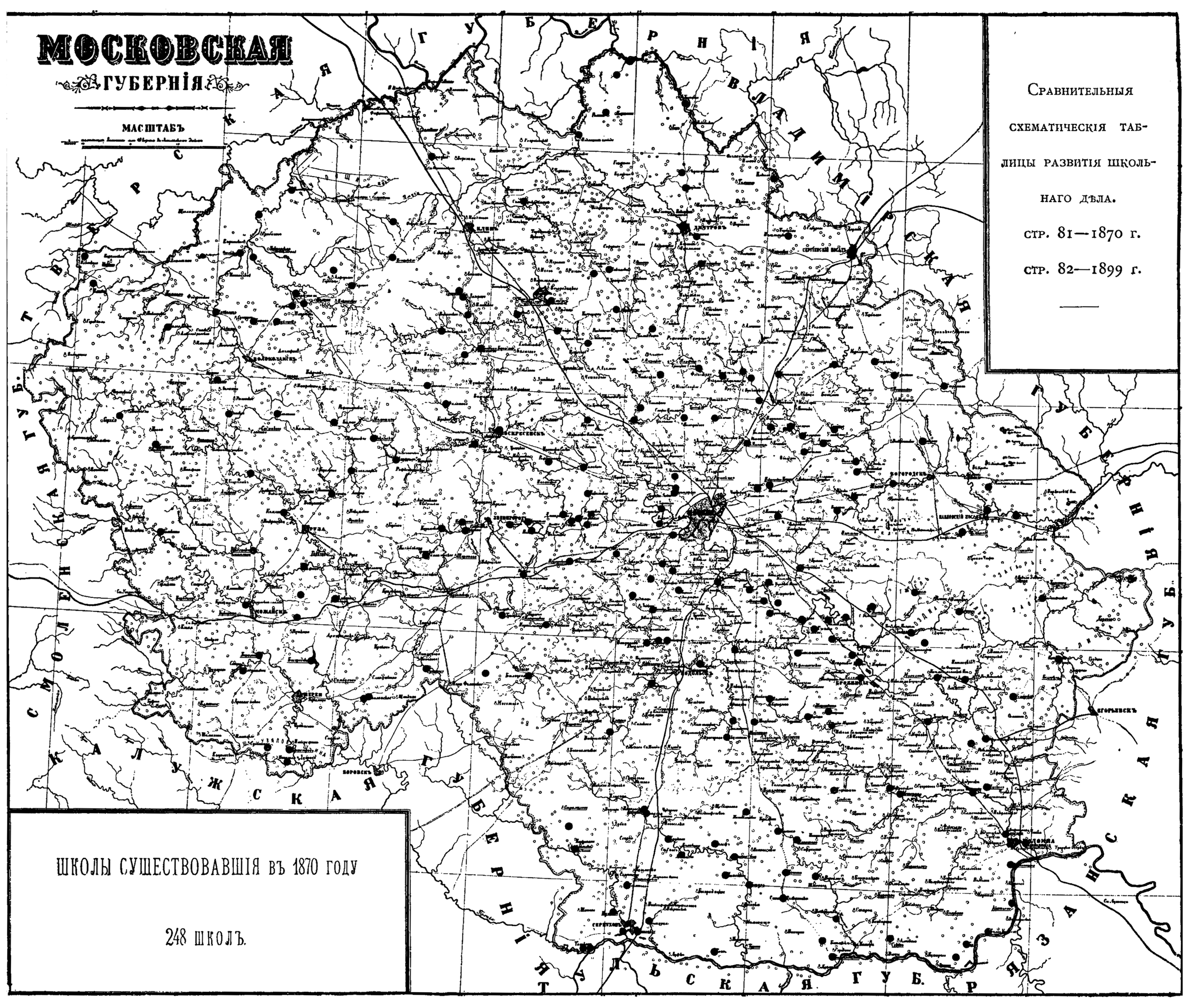 Московская губерния. Школы, существовавшие в 1870 году (248 школ)