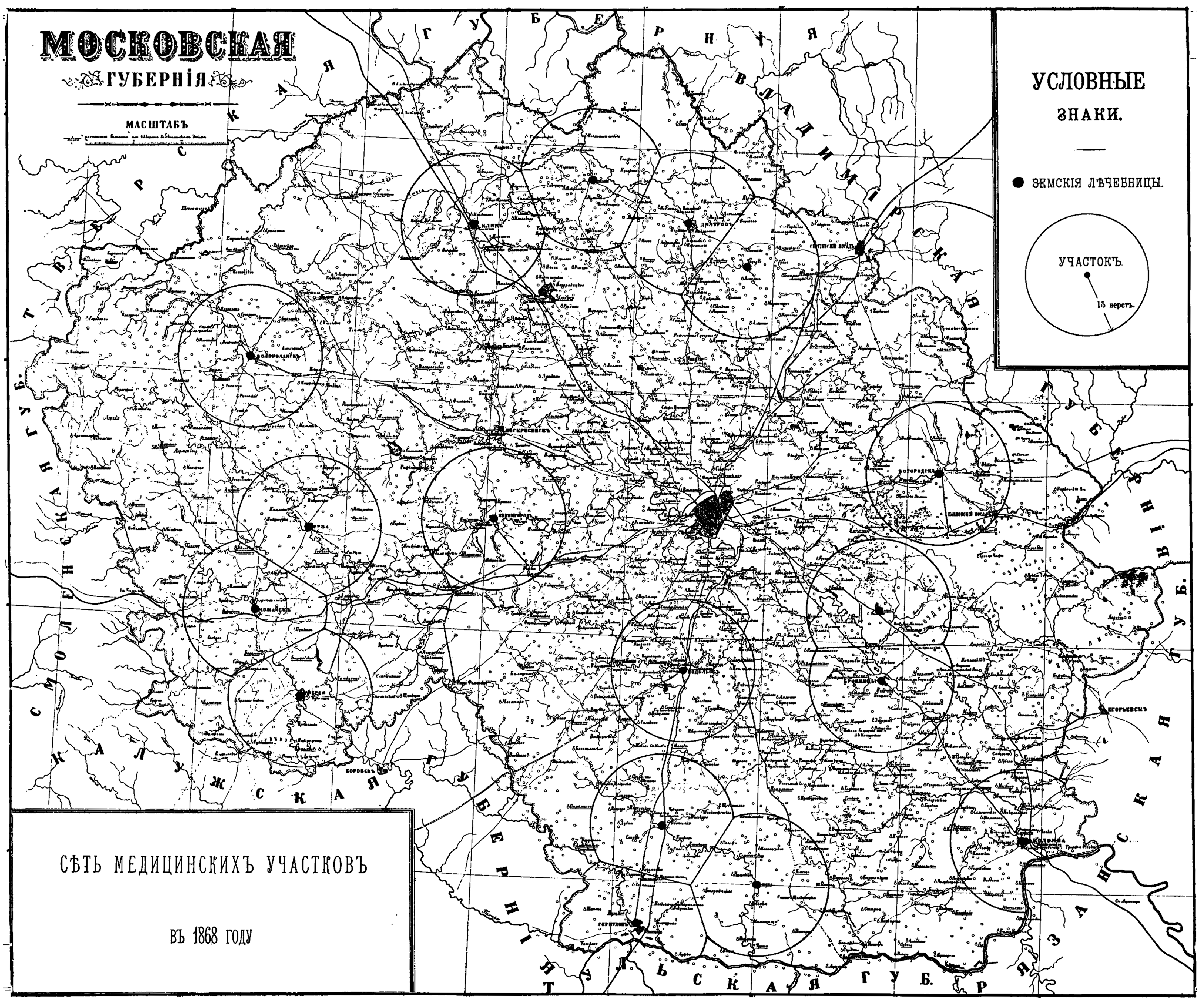 Московская губерния. Сеть медицинских участков в 1868 году