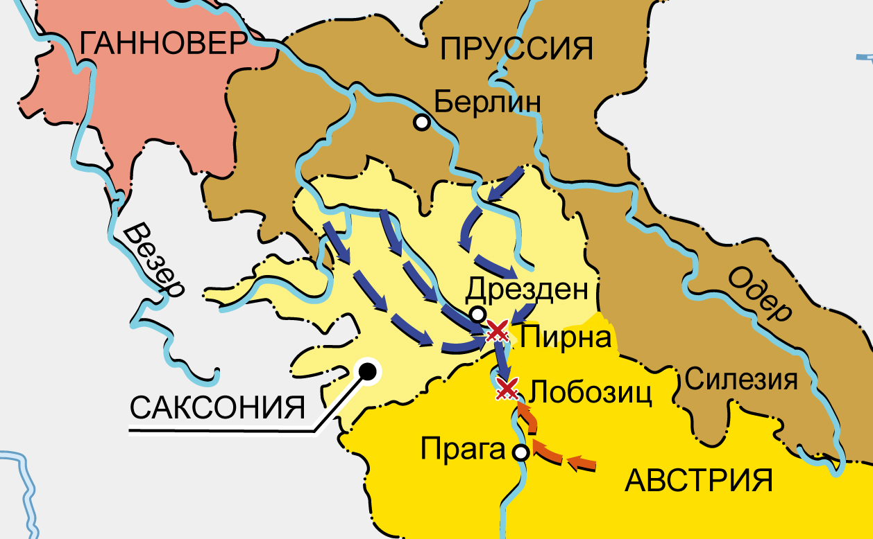 Семилетняя война 1756–1763 гг. Карта кампании 1756 г. в Саксонии