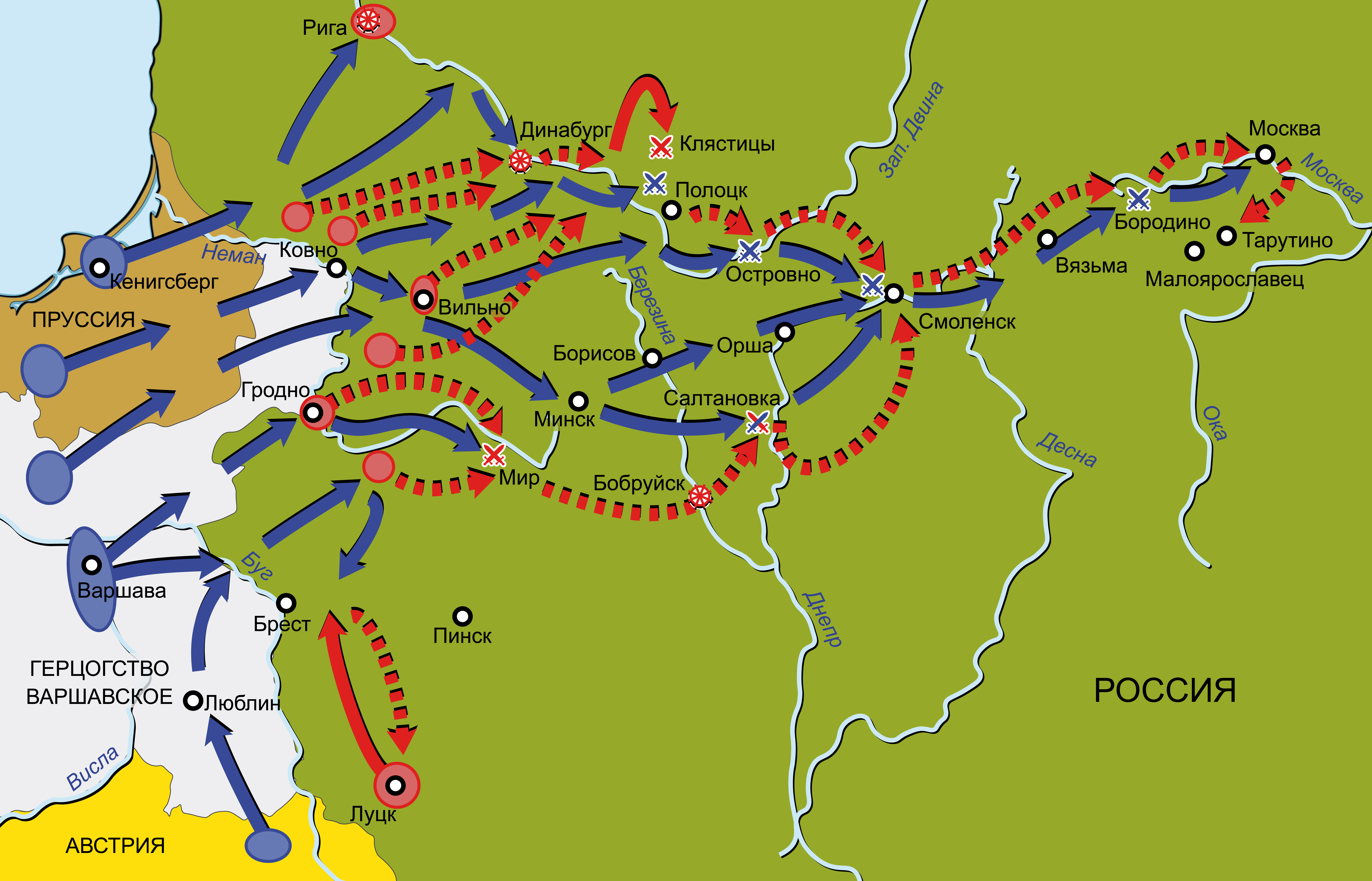Шестая антифранцузская коалиция 1812–1814 гг. Карта кампании в России в июне-октябре 1812 г.