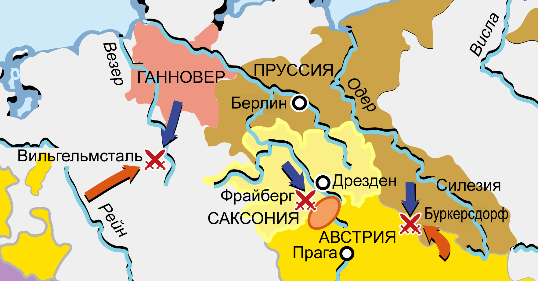 Полки Англии, Испании, Франции, Швеции, Австрии, Баварии, Саксонии, Пруссии