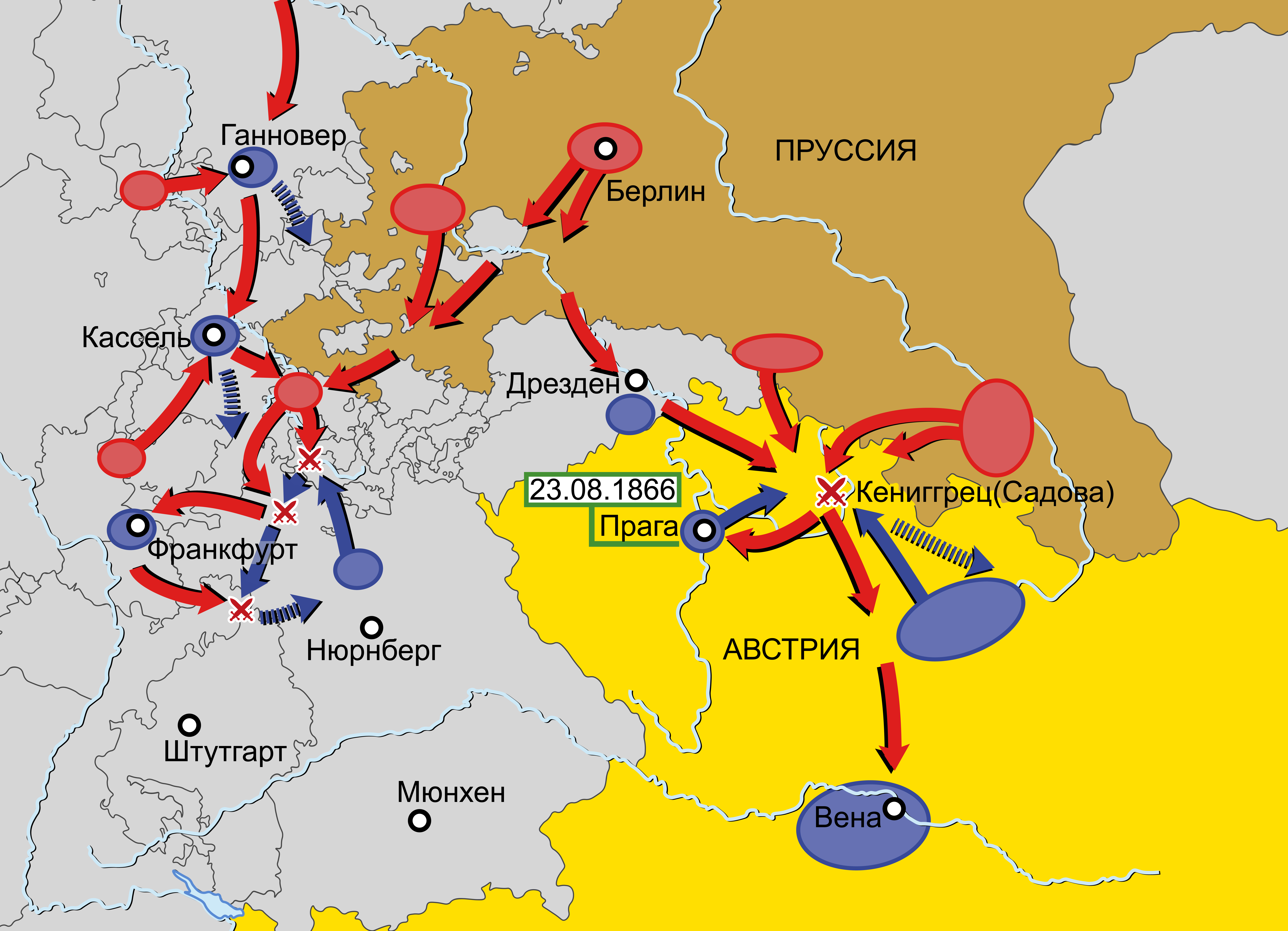 Австро-прусско-итальянская война 1866 г. Карта кампаний 1866 г. в Германии и Богемии