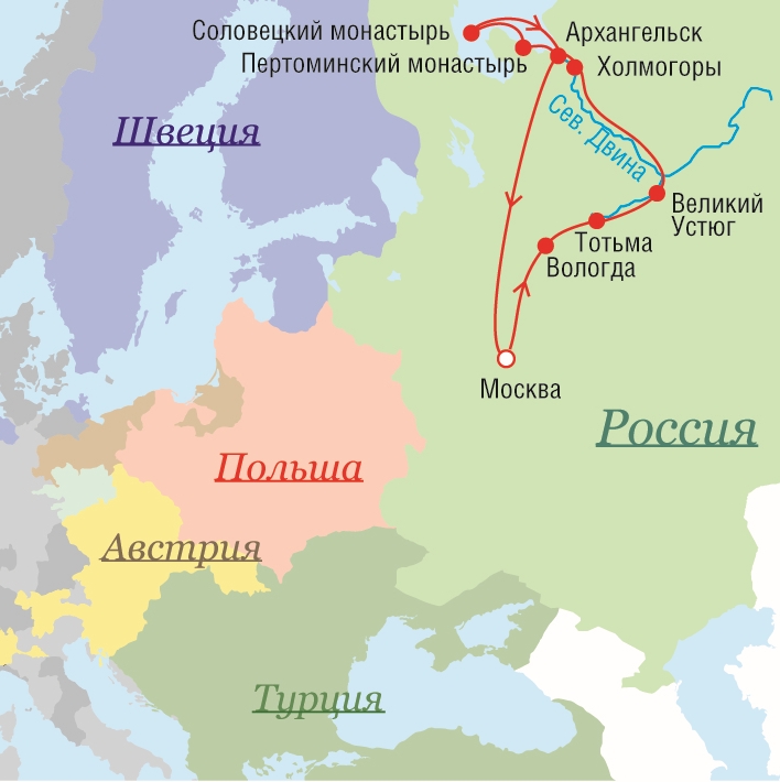 Маршрут поездок Петра I - 1700 г.