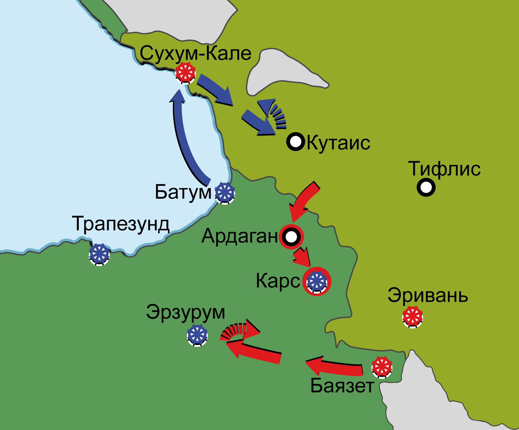 Крымская война 1853–1856 гг. Карта кампании 1855 г. на Кавказе