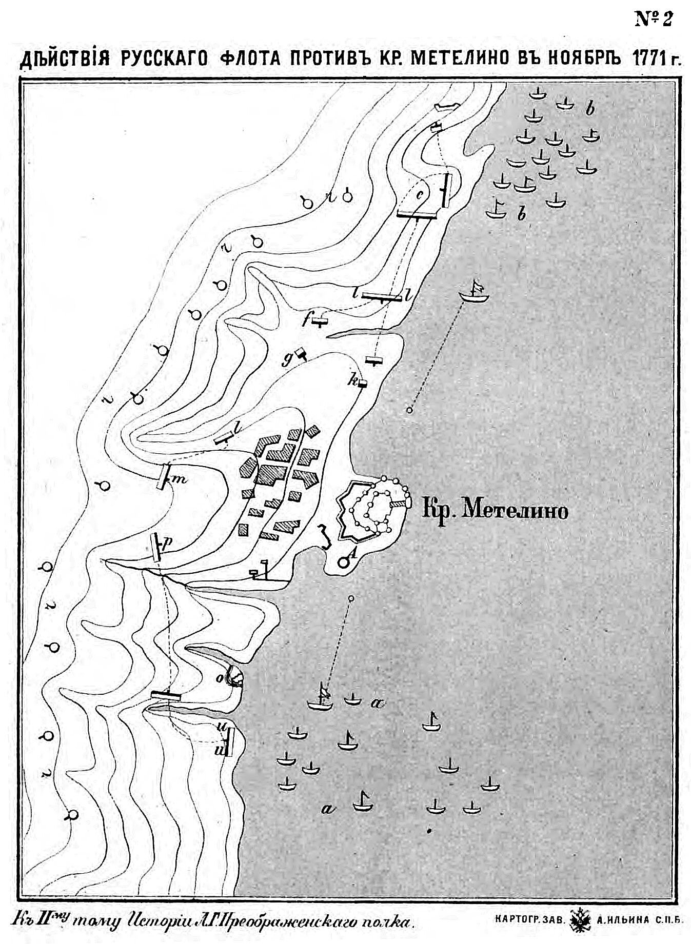 Карта: Действия русского флота против крепости Метелино в ноябре 1771 года