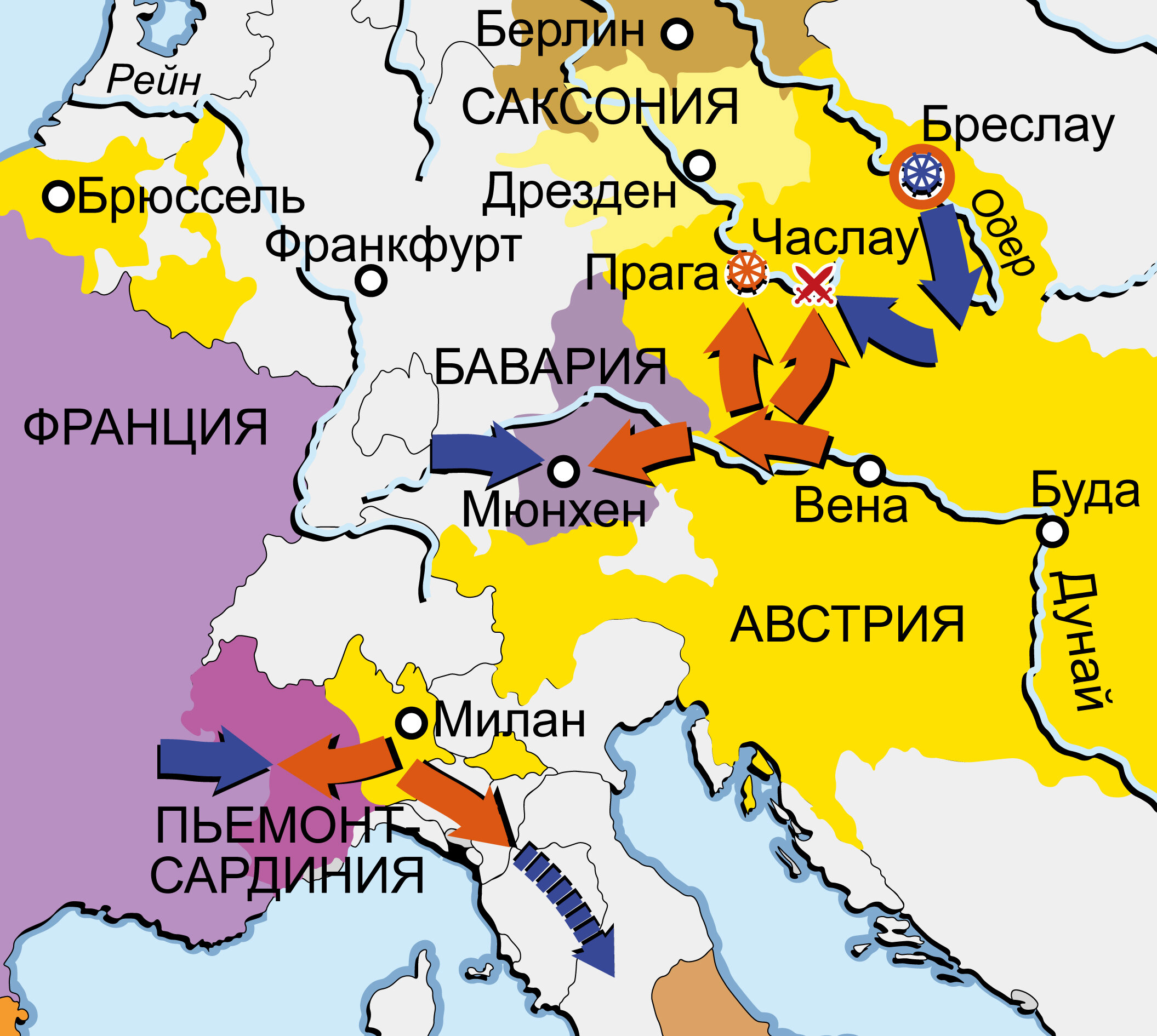 Война за австрийское наследство 1740–1748 гг. Карта кампаний 1742 г. в Центральной Европе