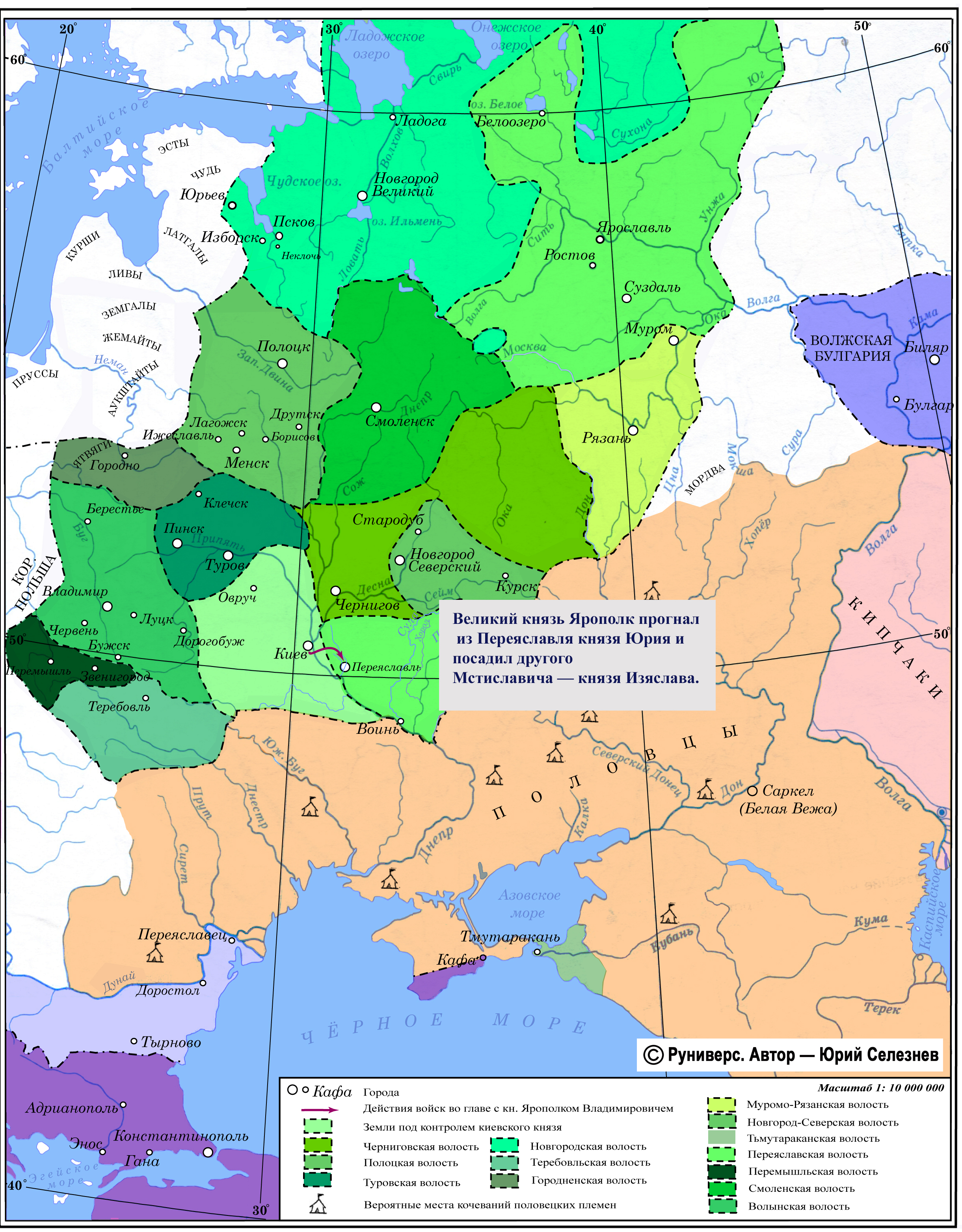 Великий князь Ярополк прогнал из Переяславля князя Юрия и посадил другого Мстиславича — князя Изяслава.