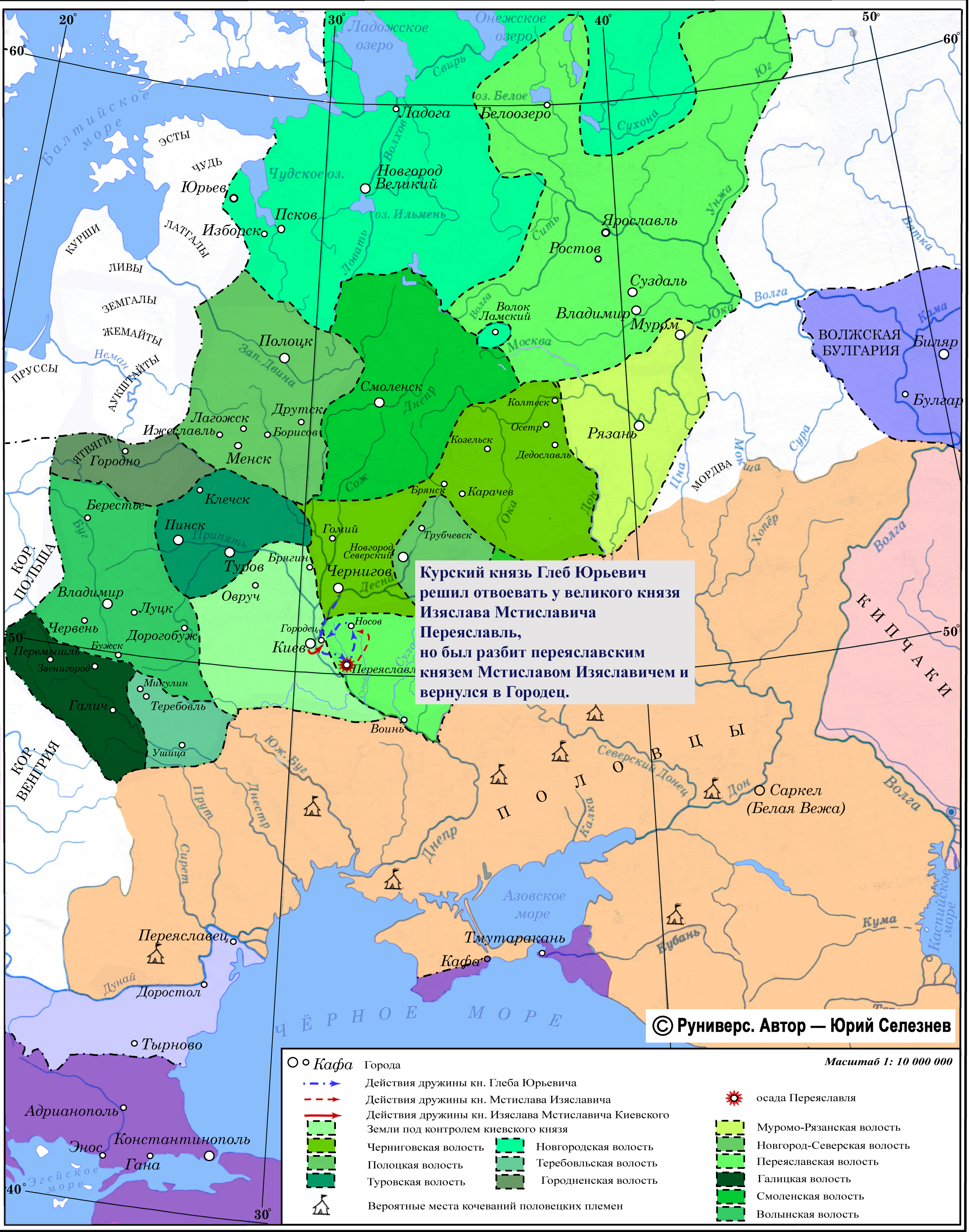 Курский князь Глеб Юрьевич решил отвоевать у великого князя Изяслава Мстиславича Переяславль, но был разбит переяславским князем Мстиславом Изяславичем и вернулся в Городец.