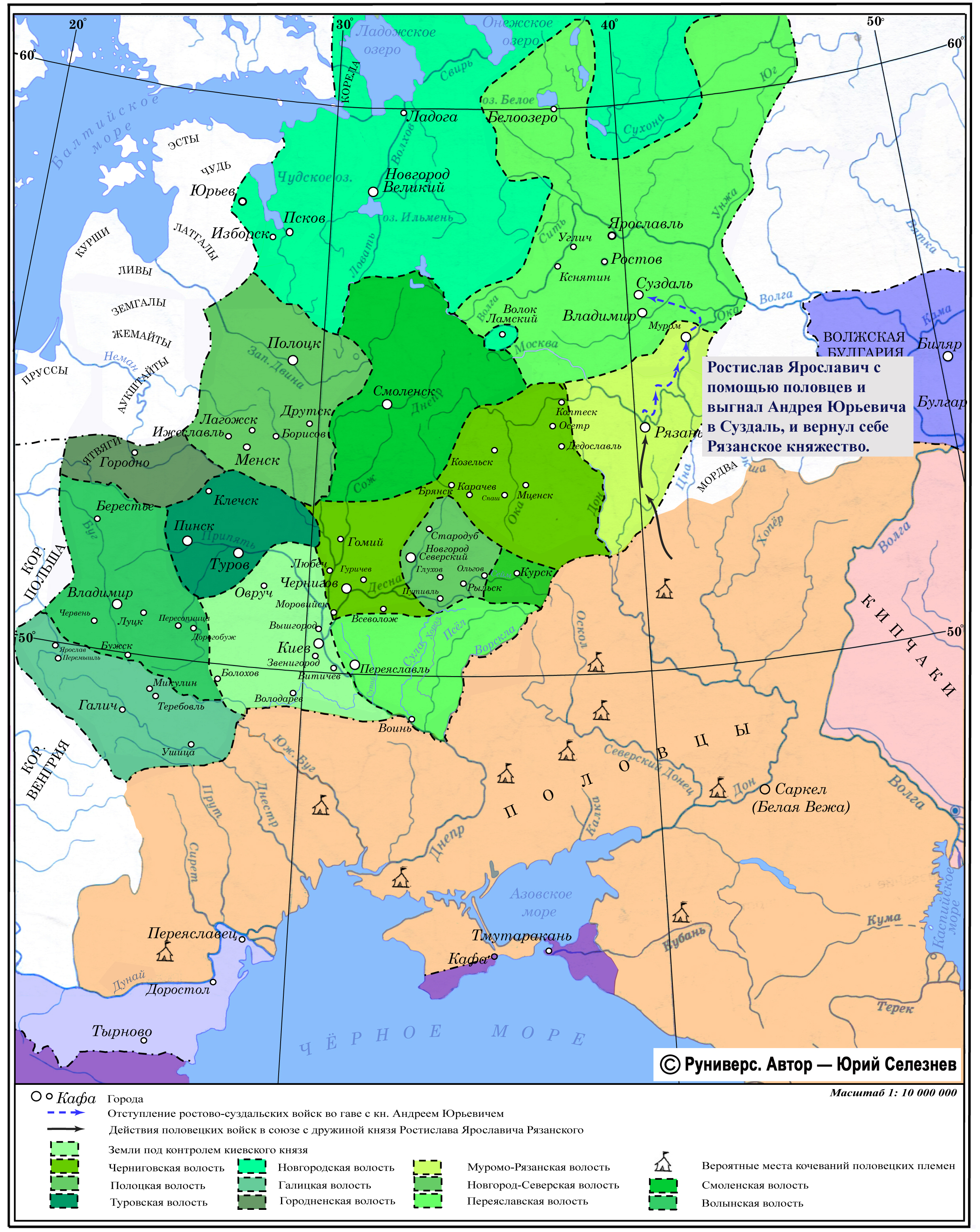 Ростислав Ярославич с помощью половцев и выгнал Андрея Юрьевича в Суздаль, и вернул себе Рязанское княжество.
