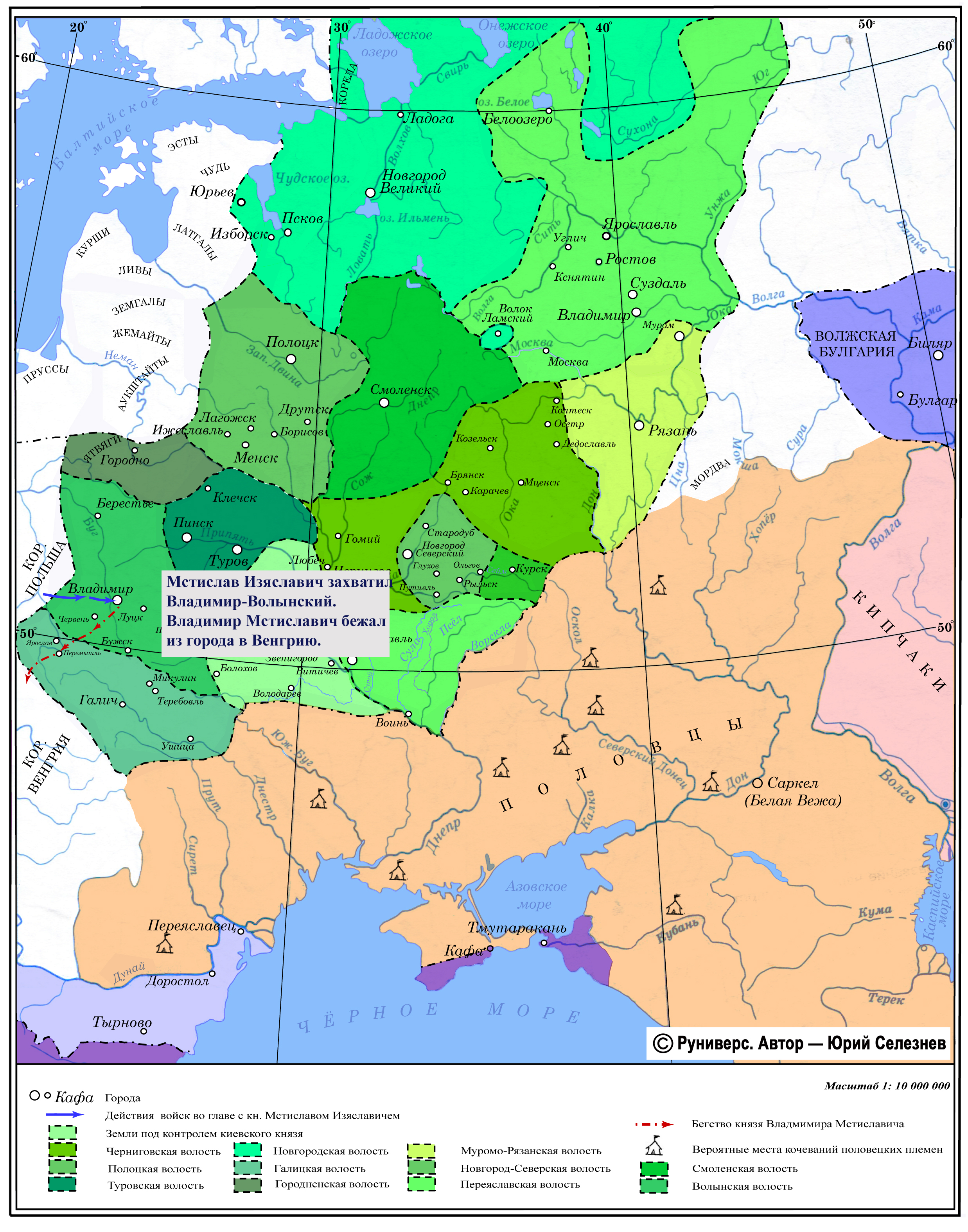 Мстислав Изяславич захватил Владимир-Волынский. Владимир Мстиславич бежал из города в Венгрию.