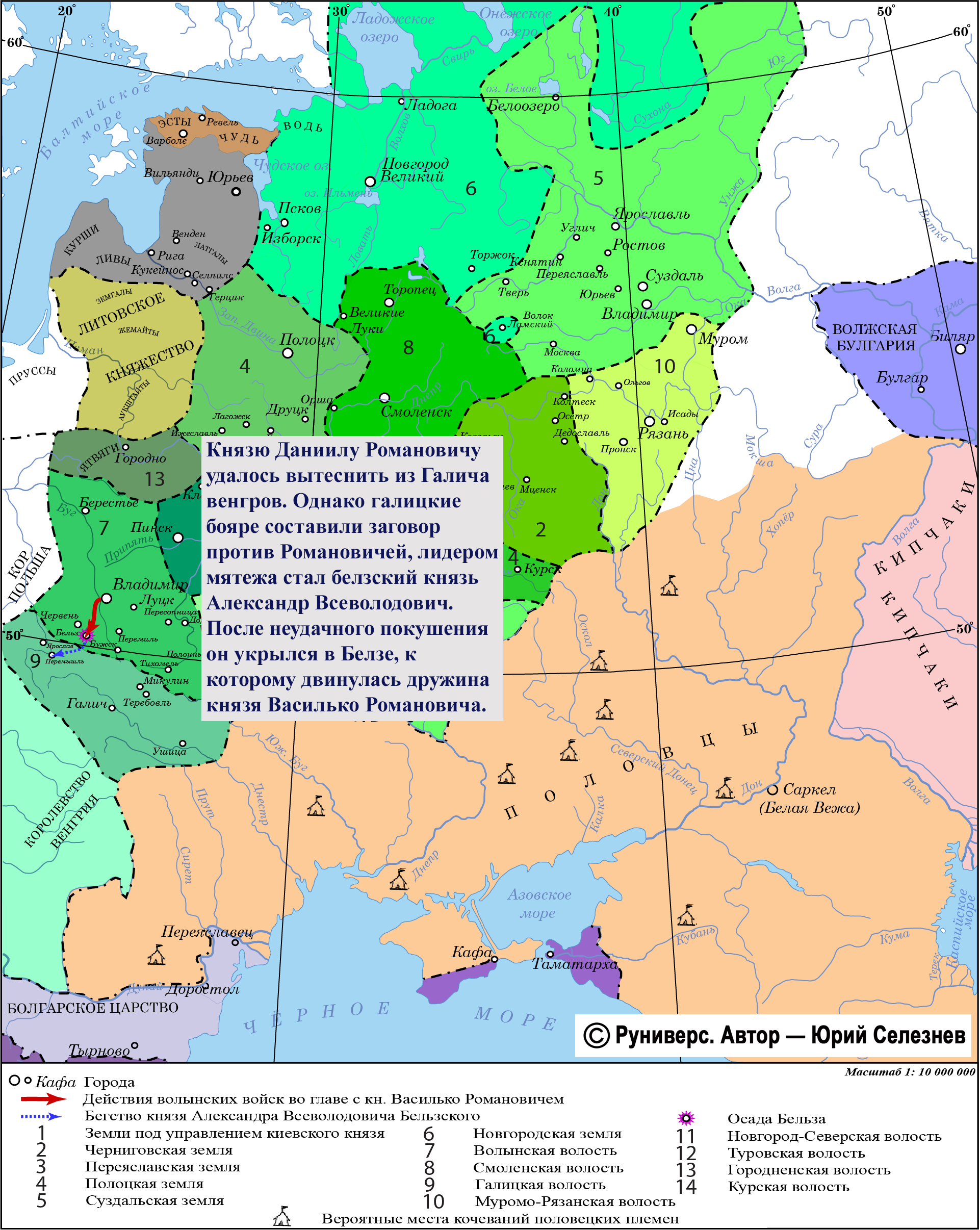 Князю Даниилу Романовичу удалось вытеснить из Галича венгров. Однако галицкие бояре составили заговор против Романовичей, лидером мятежа стал белзский князь Александр Всеволодович. После неудачного покушения он укрылся в Белзе, к которому двинулась дружина князя Василько Романовича.
