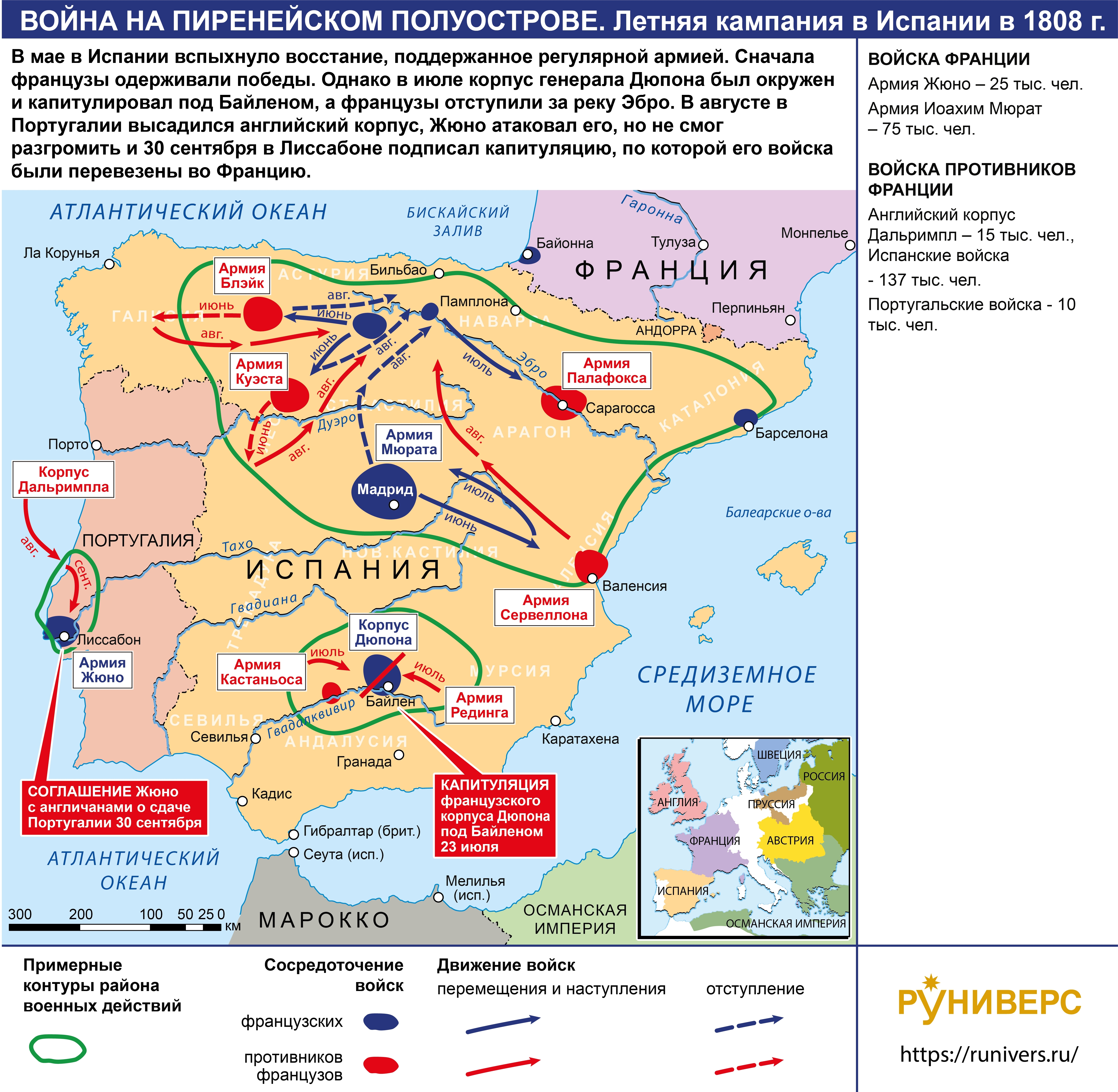Наполеоновские войны. Война на Пиренейском полуострове. Летняя кампания в Испании в 1808 г.
