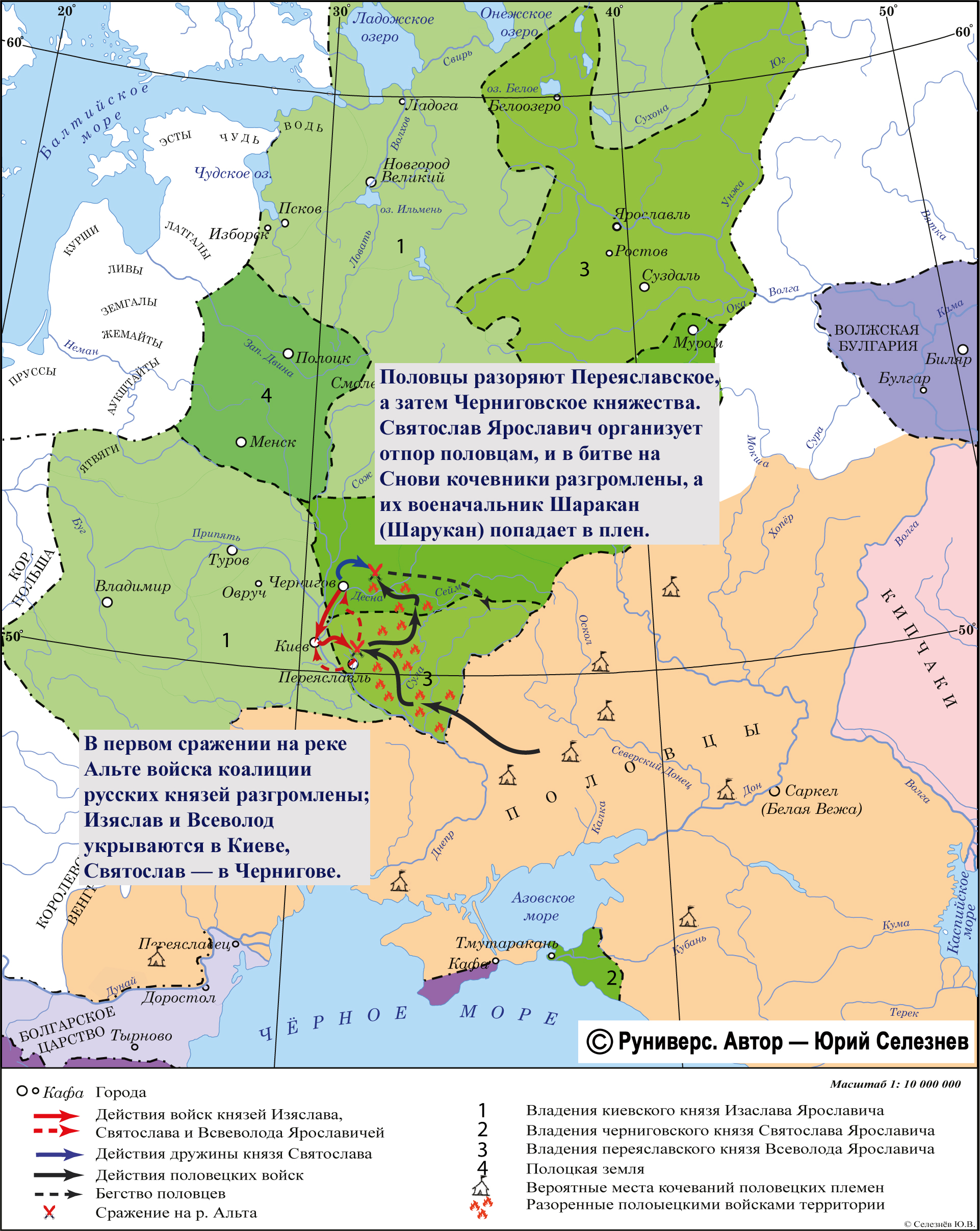 Половцы разоряют Переяславское, а затем Черниговское княжества. Святослав Ярославич организует