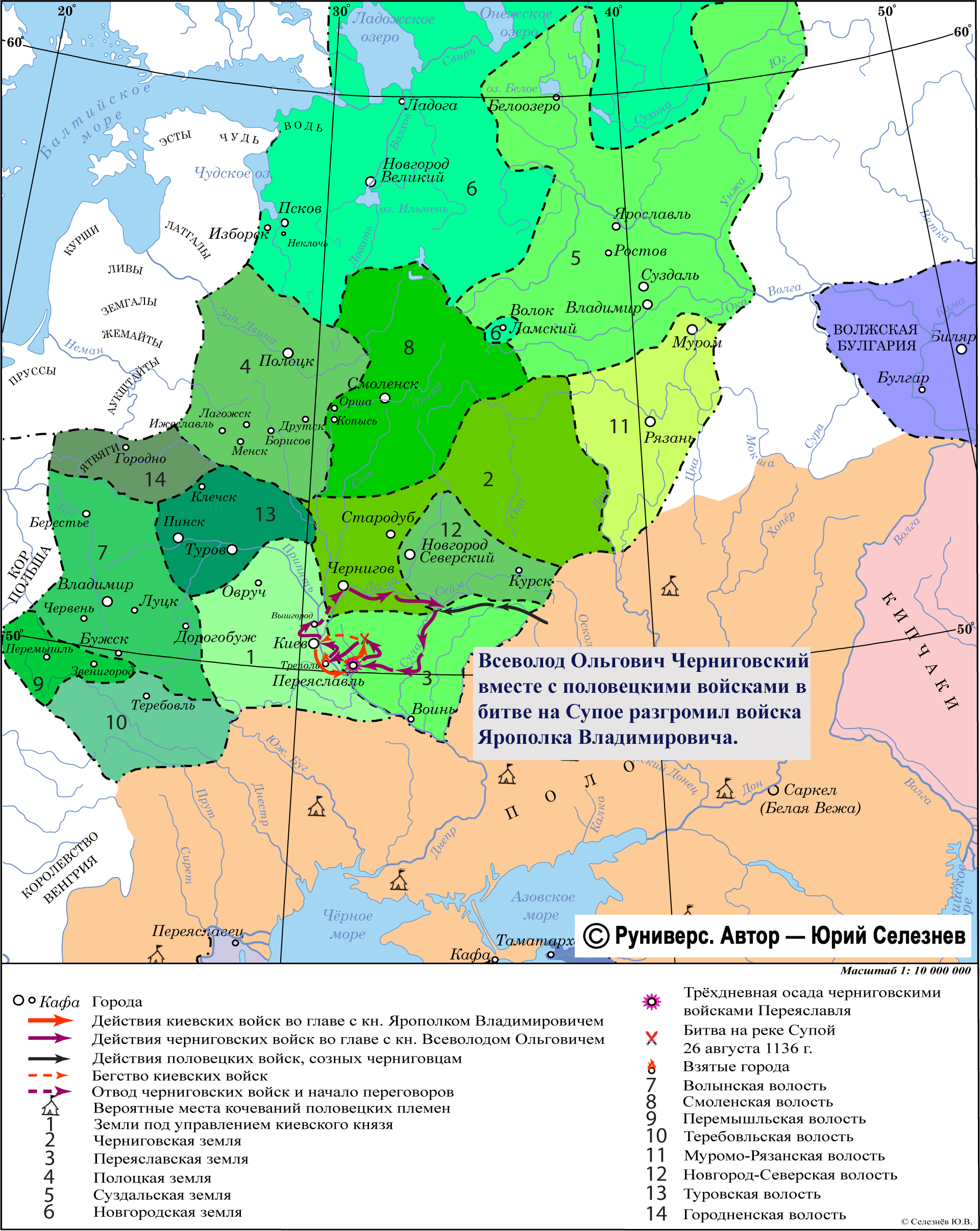Всеволод Ольгович Черниговский вместе с половецкими войсками в битве на Супое разгромил войска Ярополка Владимировича