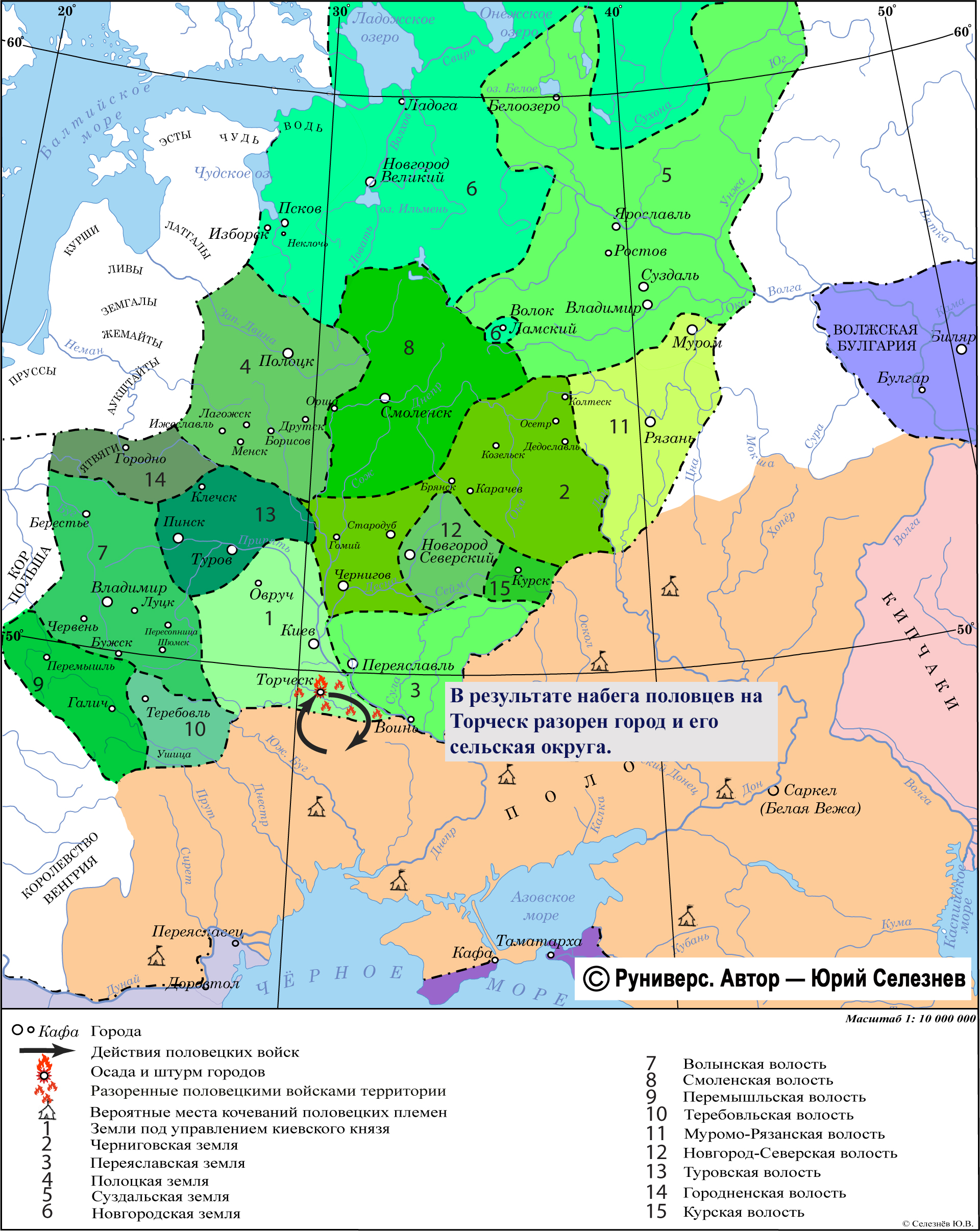 В результате набега половцев на Торческ разорен город и его сельская округа.