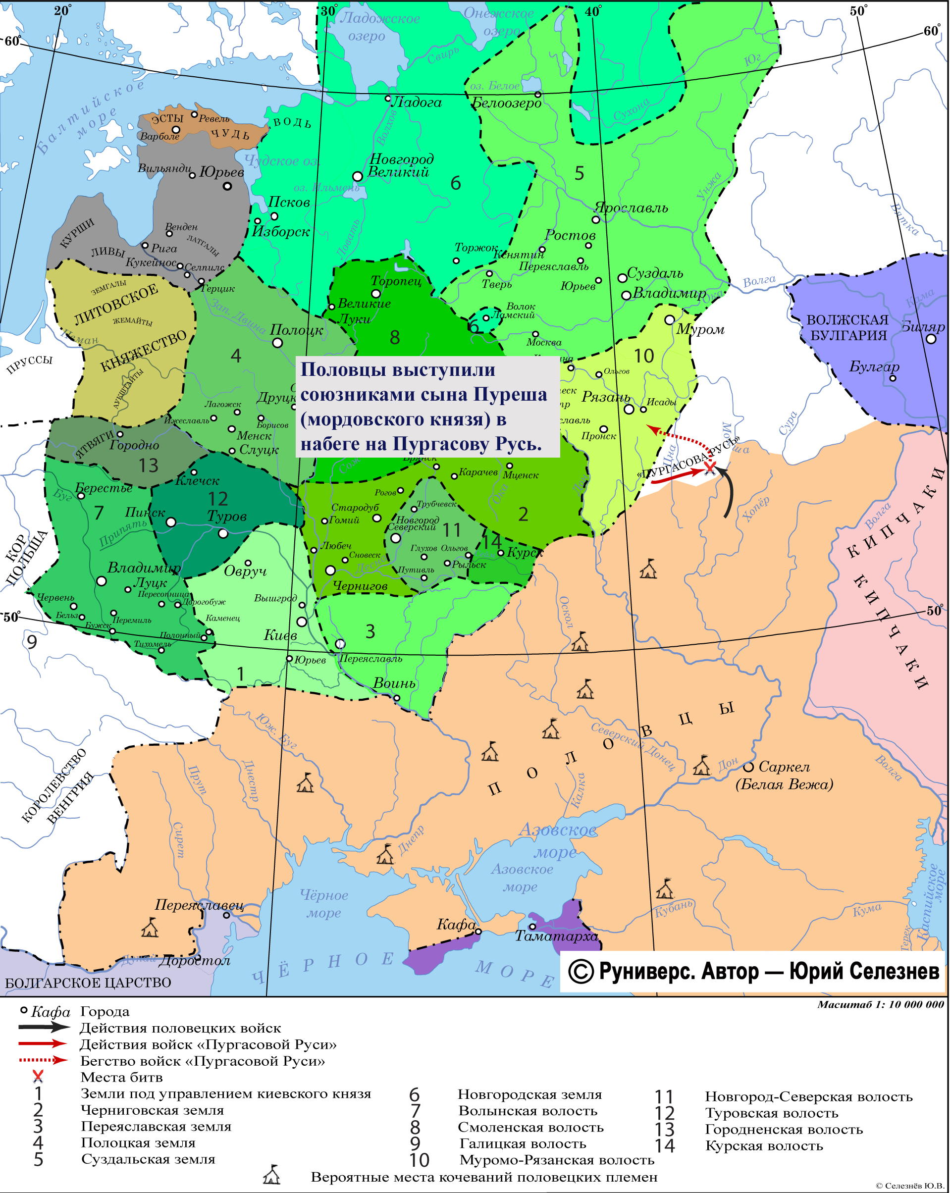 Половцы выступили союзниками сына Пуреша (мордовского князя) в набеге на Пургасову Русь.