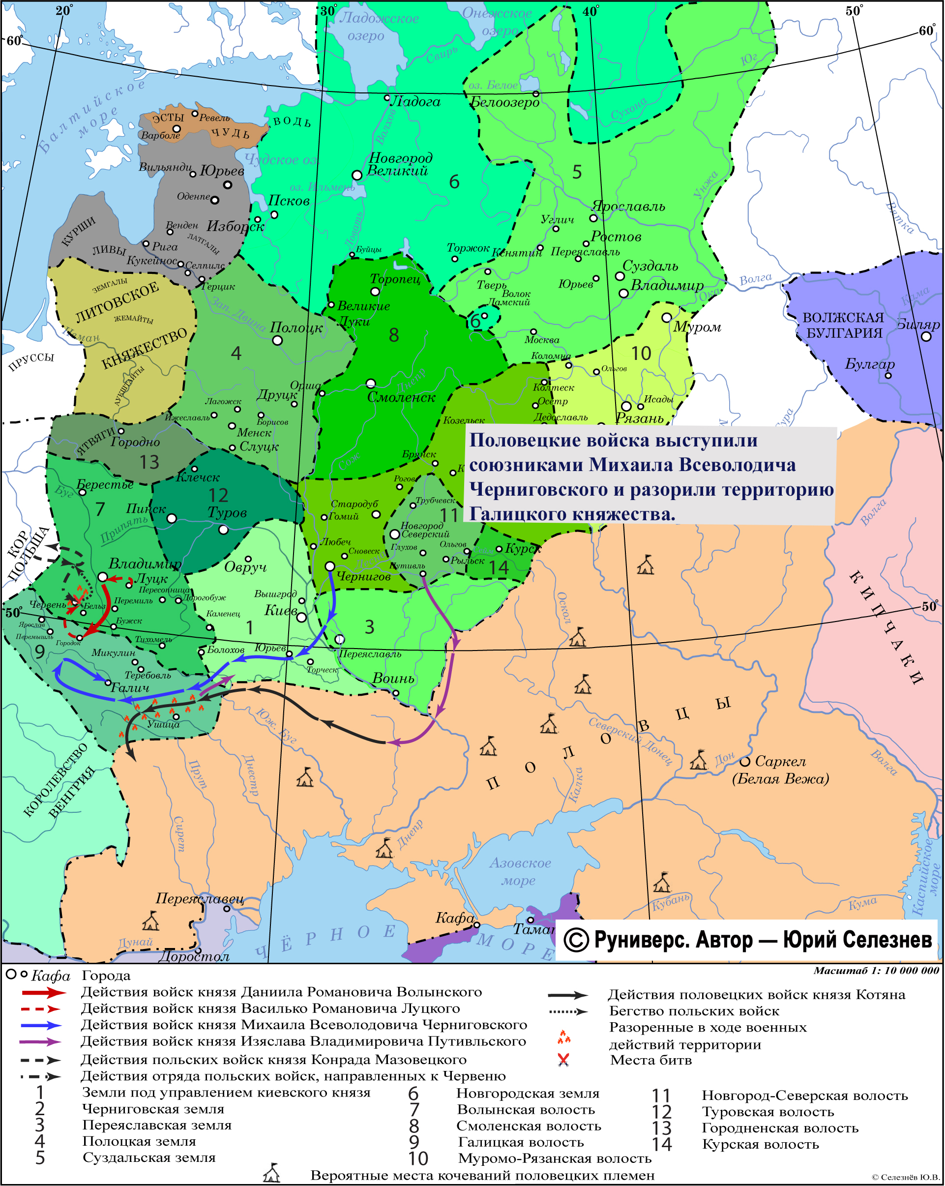 Половецкие войска выступили союзниками Михаила Всеволодича Черниговского и разорили территорию Галицкого княжества.