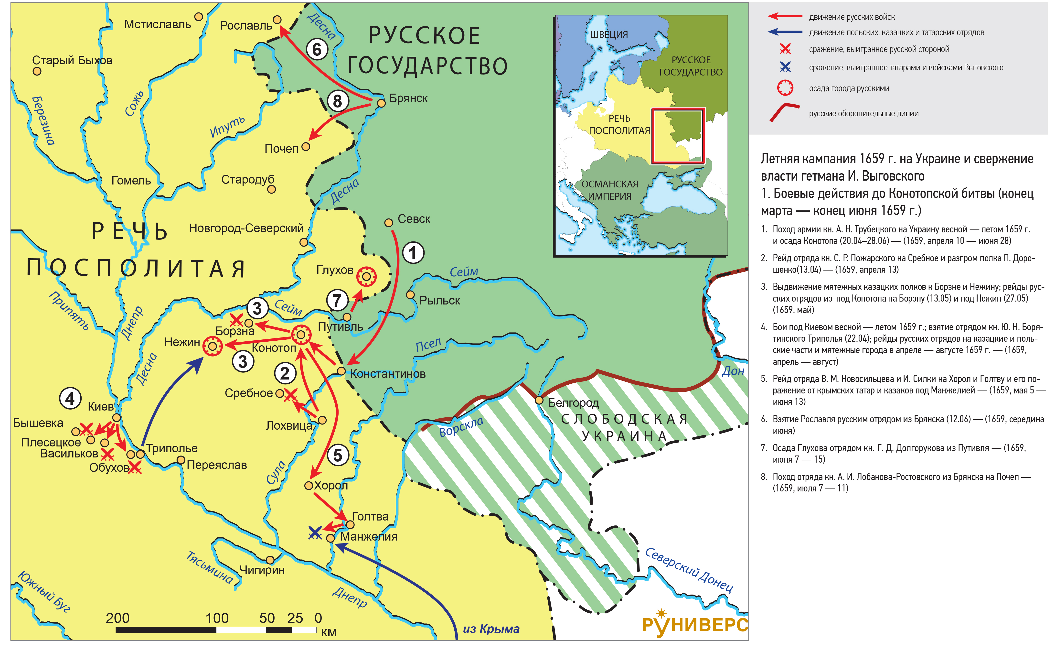1. Поход армии кн. А. Н. Трубецкого на Украину весной — летом 1659 г. и осада Конотопа (20.04–28.06) — (1659, апреля 10 — июня 28)