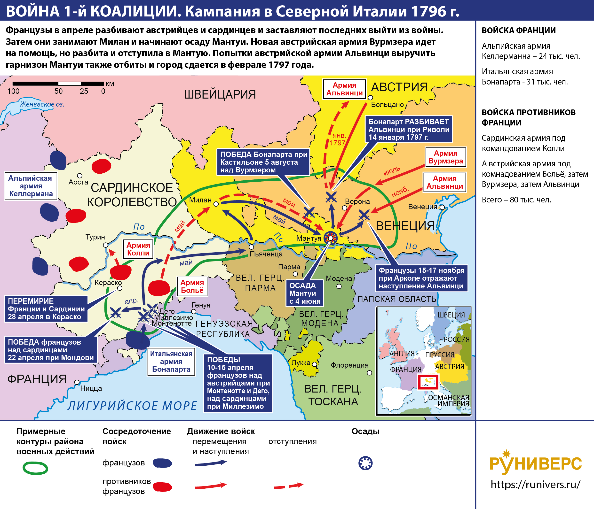 Война Первой антифранцузской коалиции. Кампания в Италии в 1796 г.