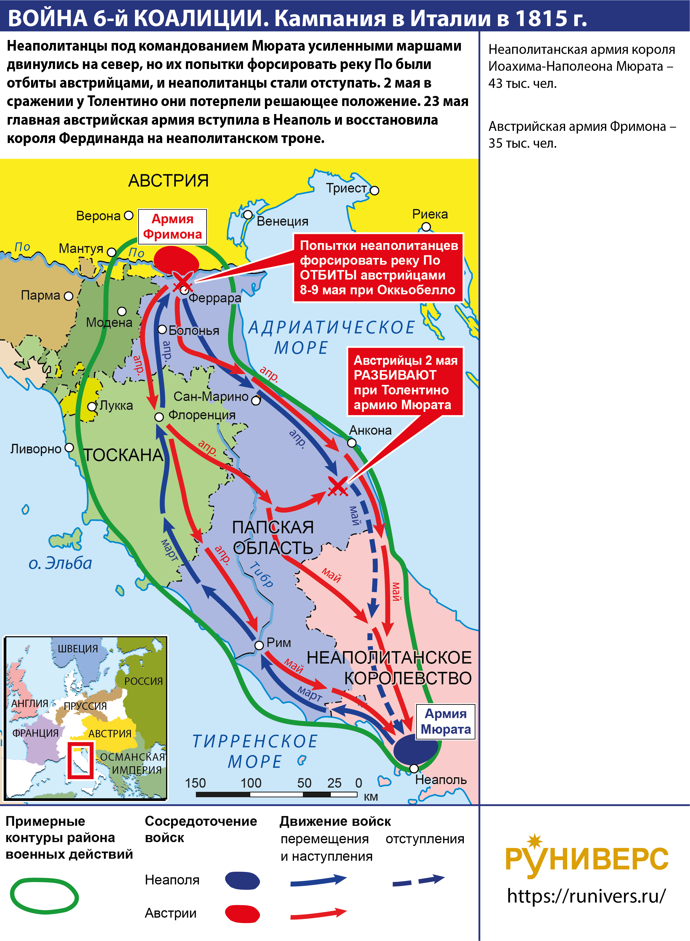 Война Шестой антифранцузской коалиции 1812-1814 гг. Кампания в Италии 1815 г.