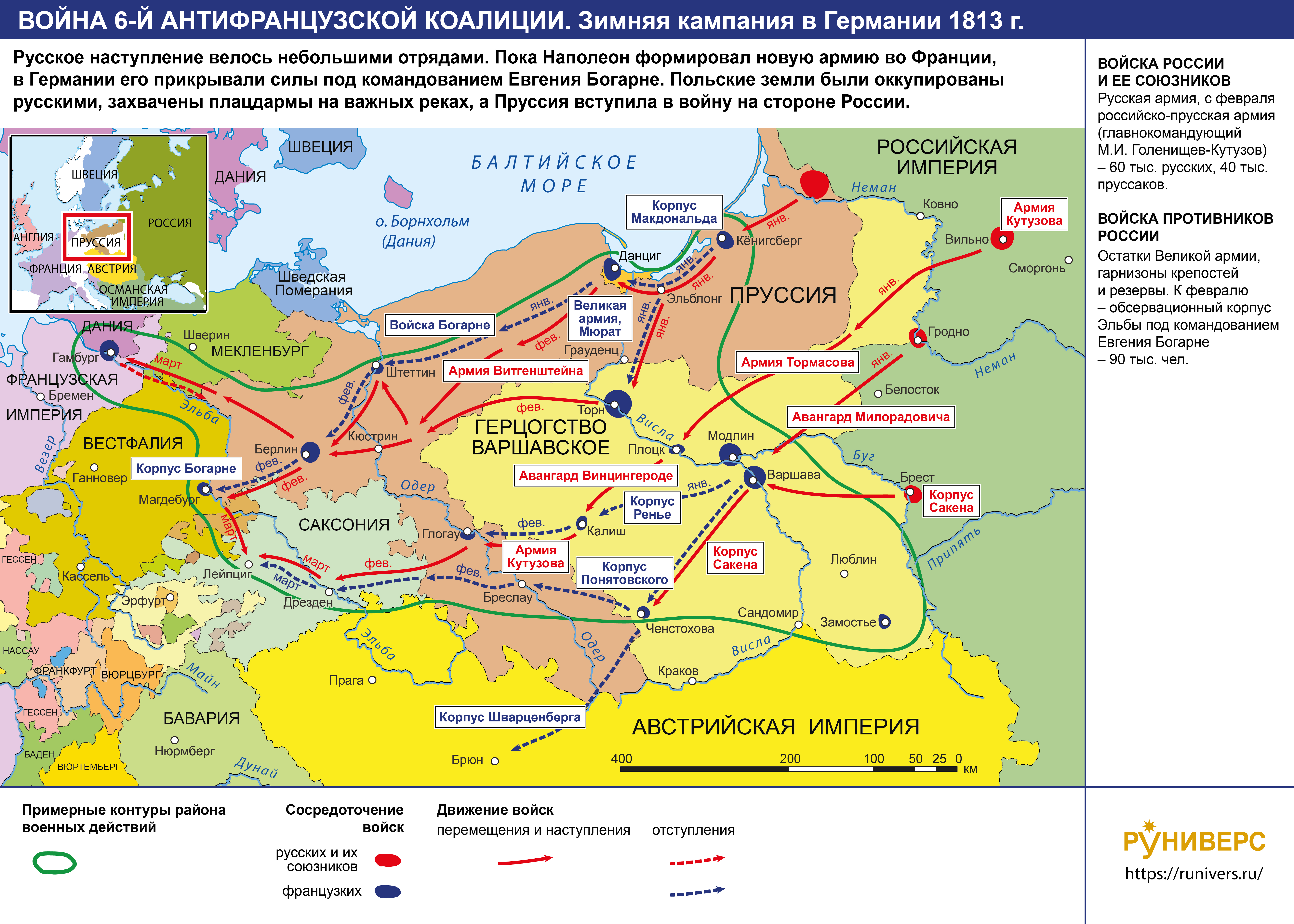 Война Шестой антифранцузской коалиции 1812-1814 гг. Заграничные походы: Зимняя кампания в Германии 1813 г.