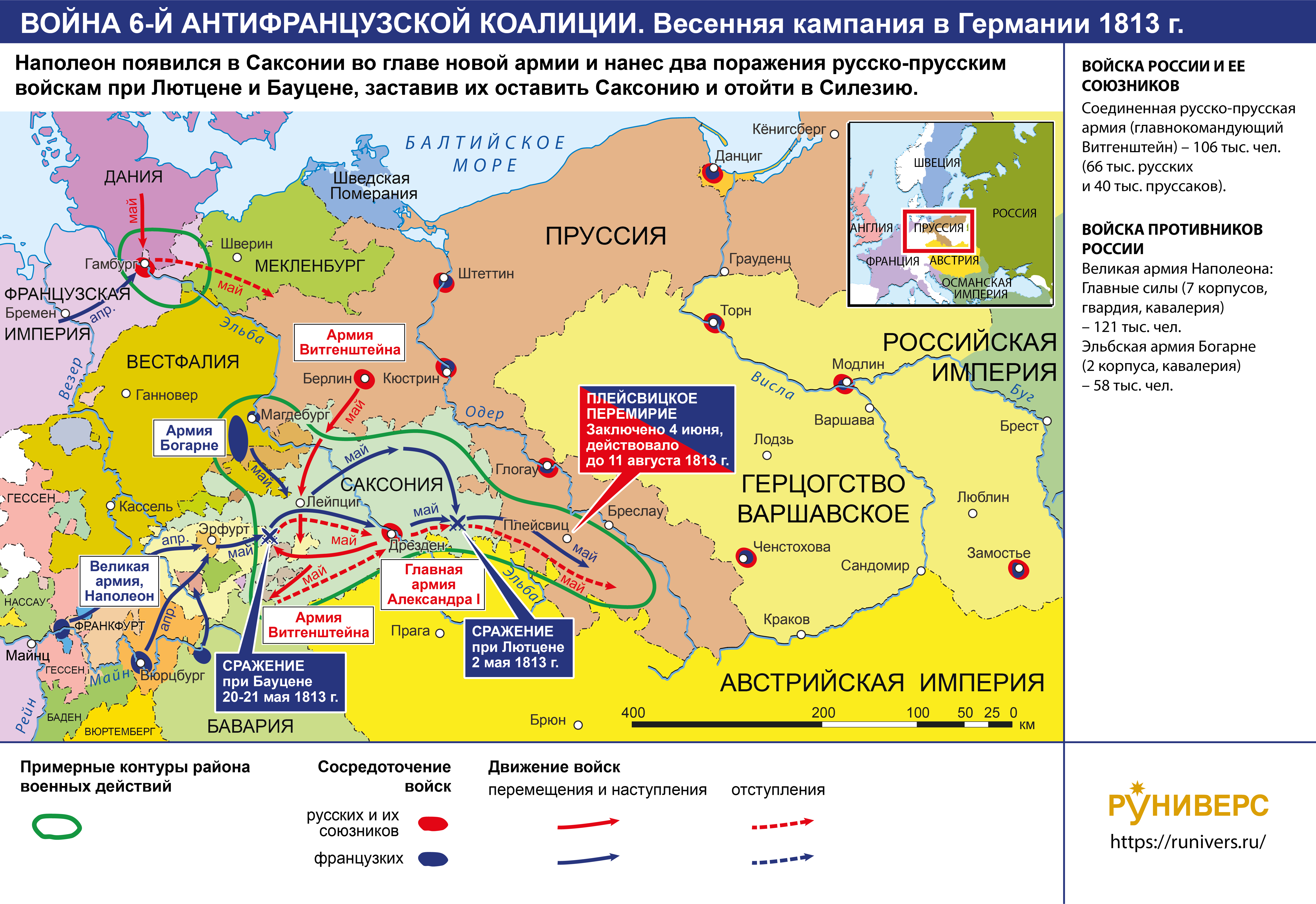 Война Шестой антифранцузской коалиции 1812-1814 гг. Заграничные походы: Весенняя кампания в Германии 1813 г.