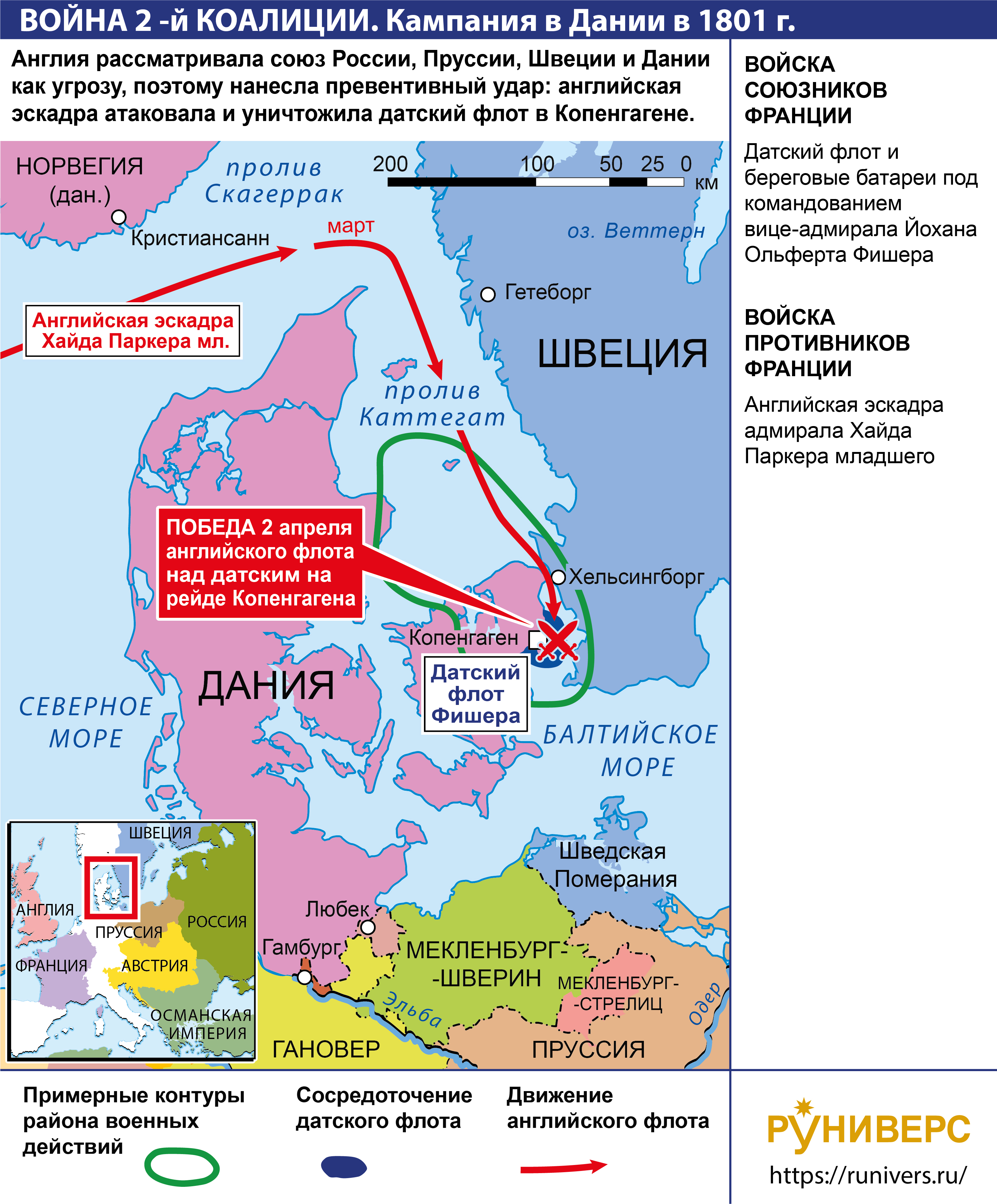 Война Второй антифранцузской коалиции 1798–1802 гг. Кампания в Дании в 1801
