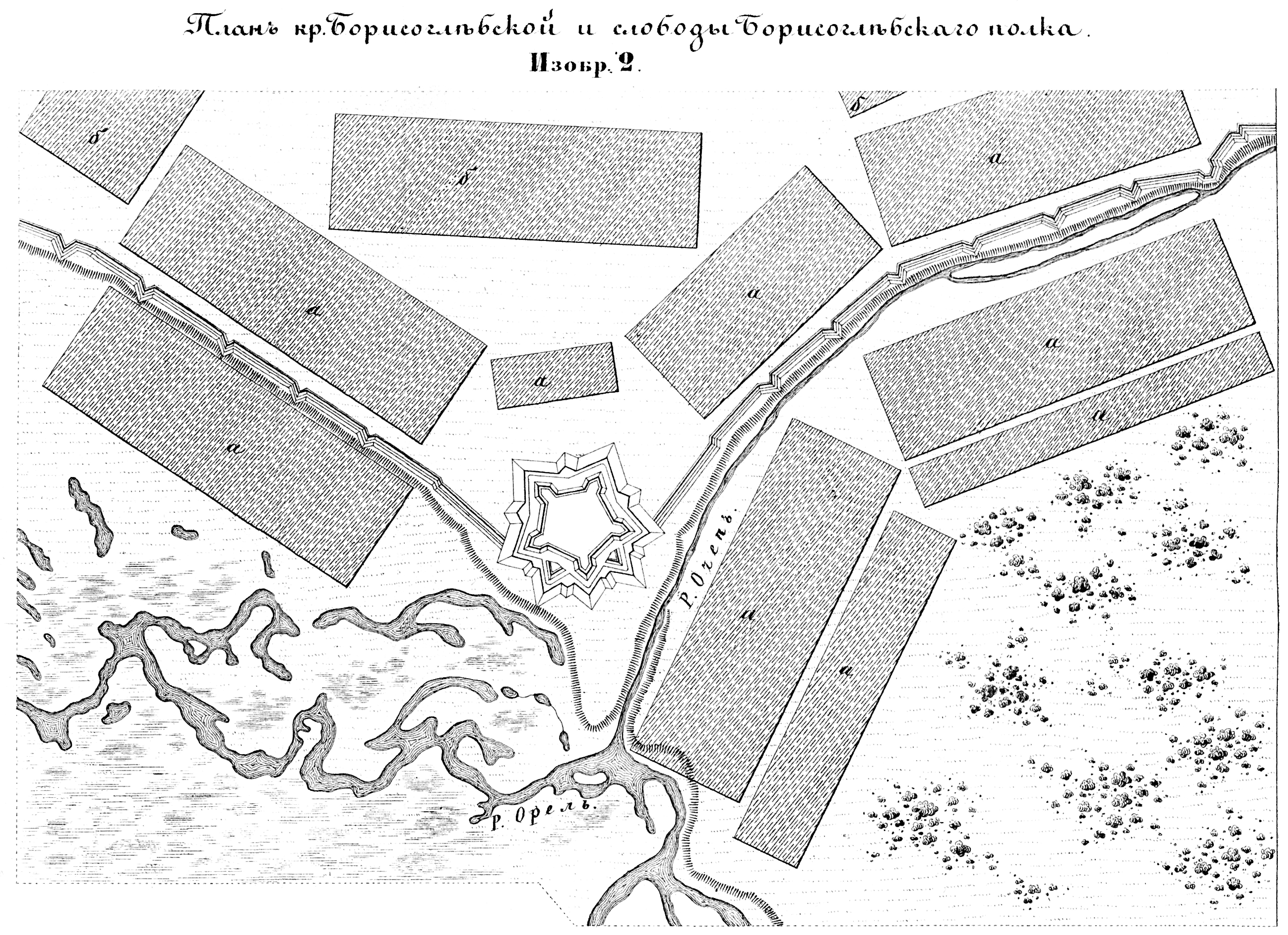 Пограничные линии. План крепости Борисоглебской и слободы Борисоглебского полка