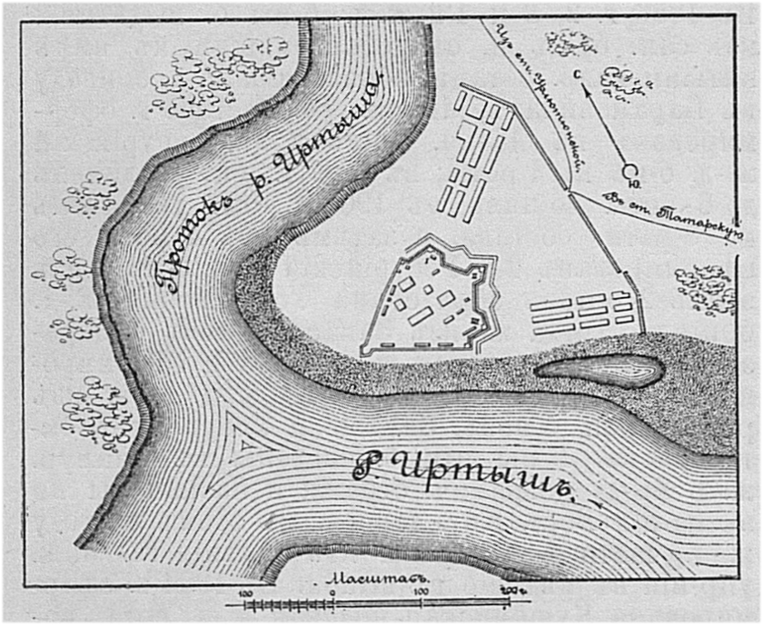 План Михайловского укрепления, составленный по показанию рядового Тенгинского полка Гуртового