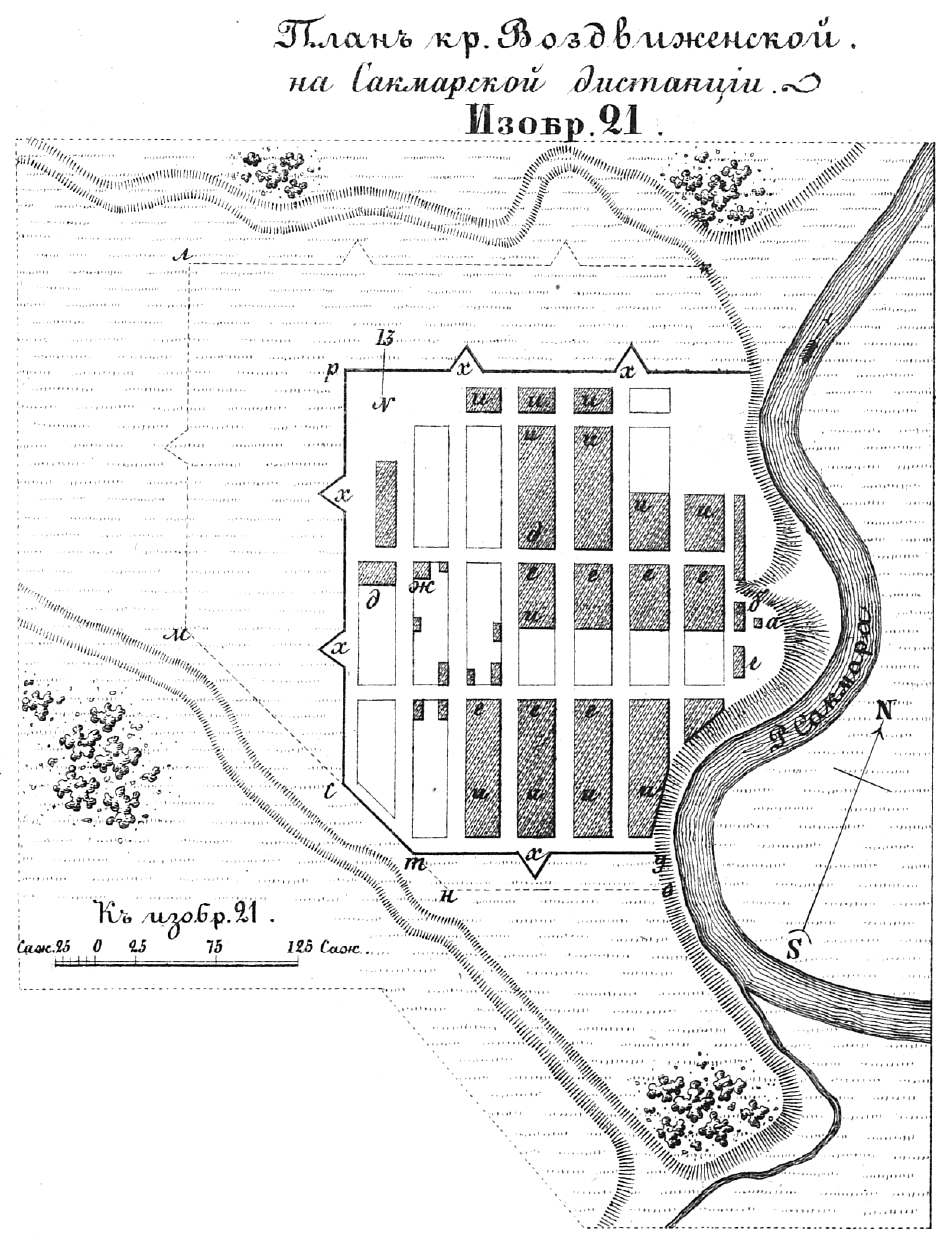 Пограничные линии. План крепости Воздвиженской на Самарской линии