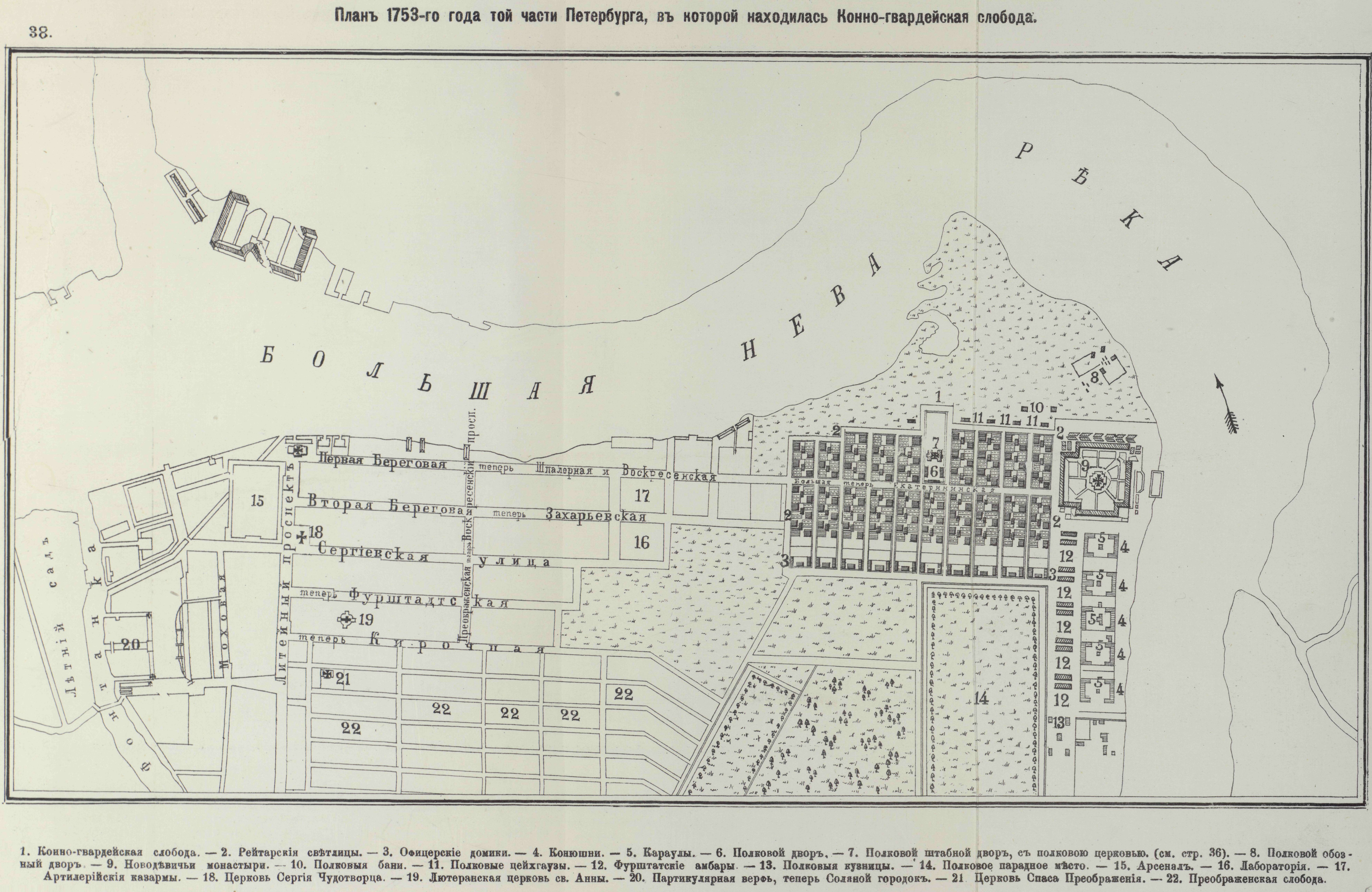 План 1753 года той части Петербурга, в которой находилась Конно-гвардейская слобода