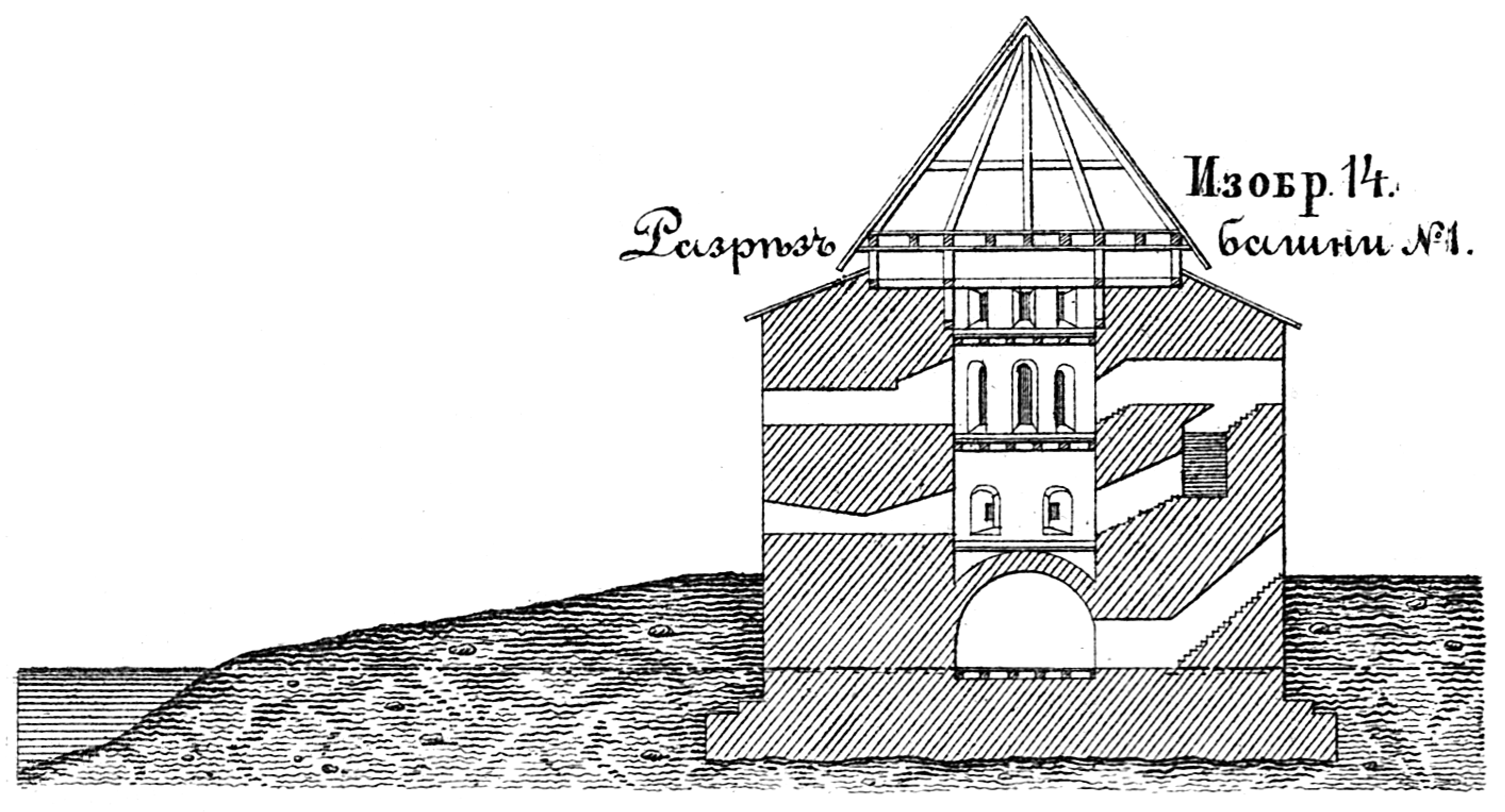 Осада крепости Нотебург в 1702 году. Разрез башни. Изобр.14