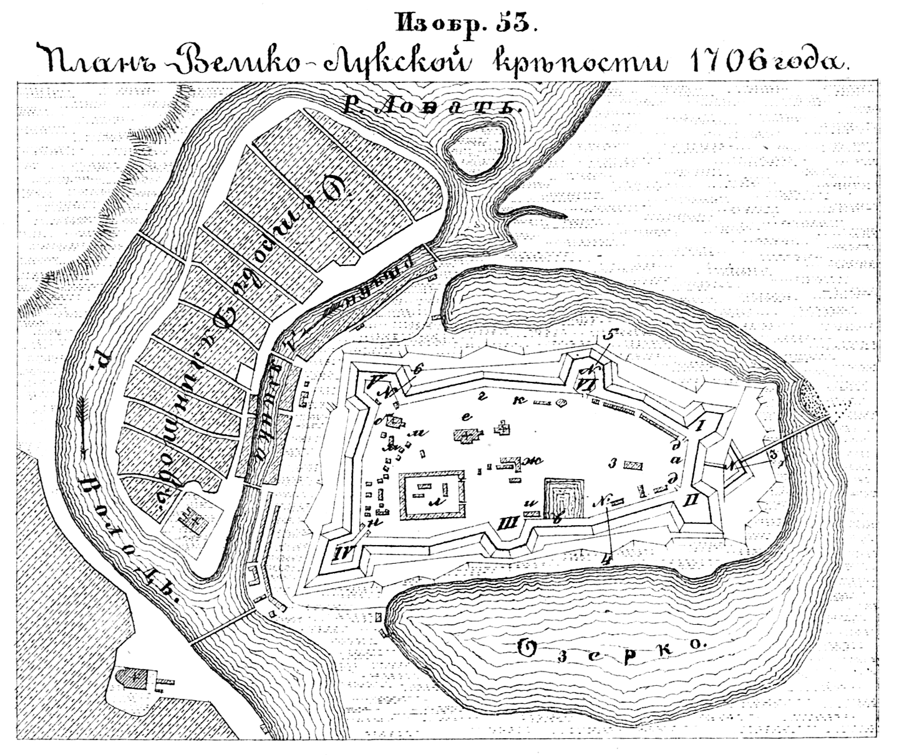 План Велико-Лукской крепости в 1706 году